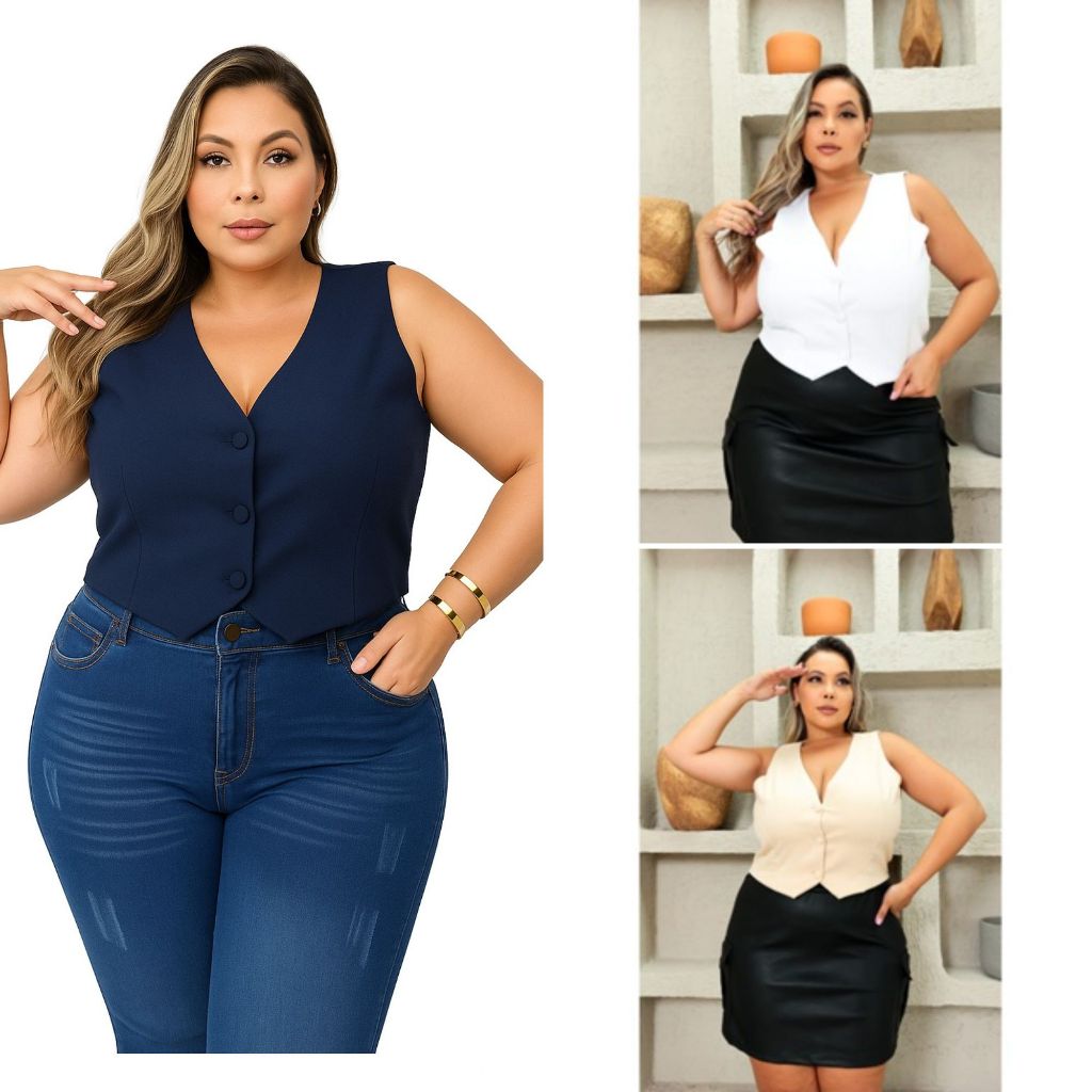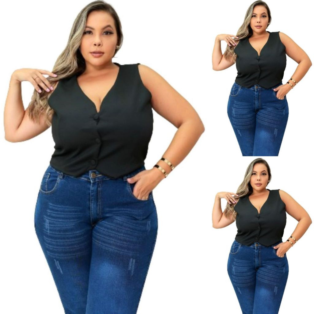 Kit 3 Coletinho Curto Plus Size Feminino Social Com Botões Chic Promoção Melhor Preço