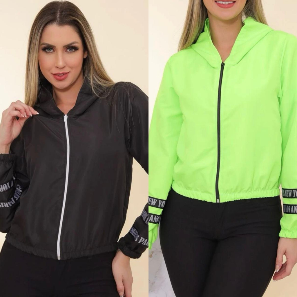 Kit 2 Corta Vento Feminina Jaqueta Com Zíper e Capuz Promoção Top Melhor Preço