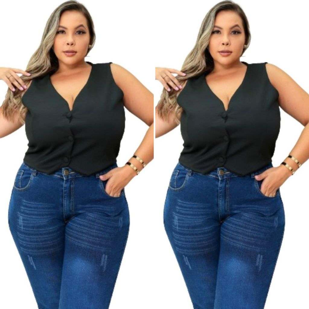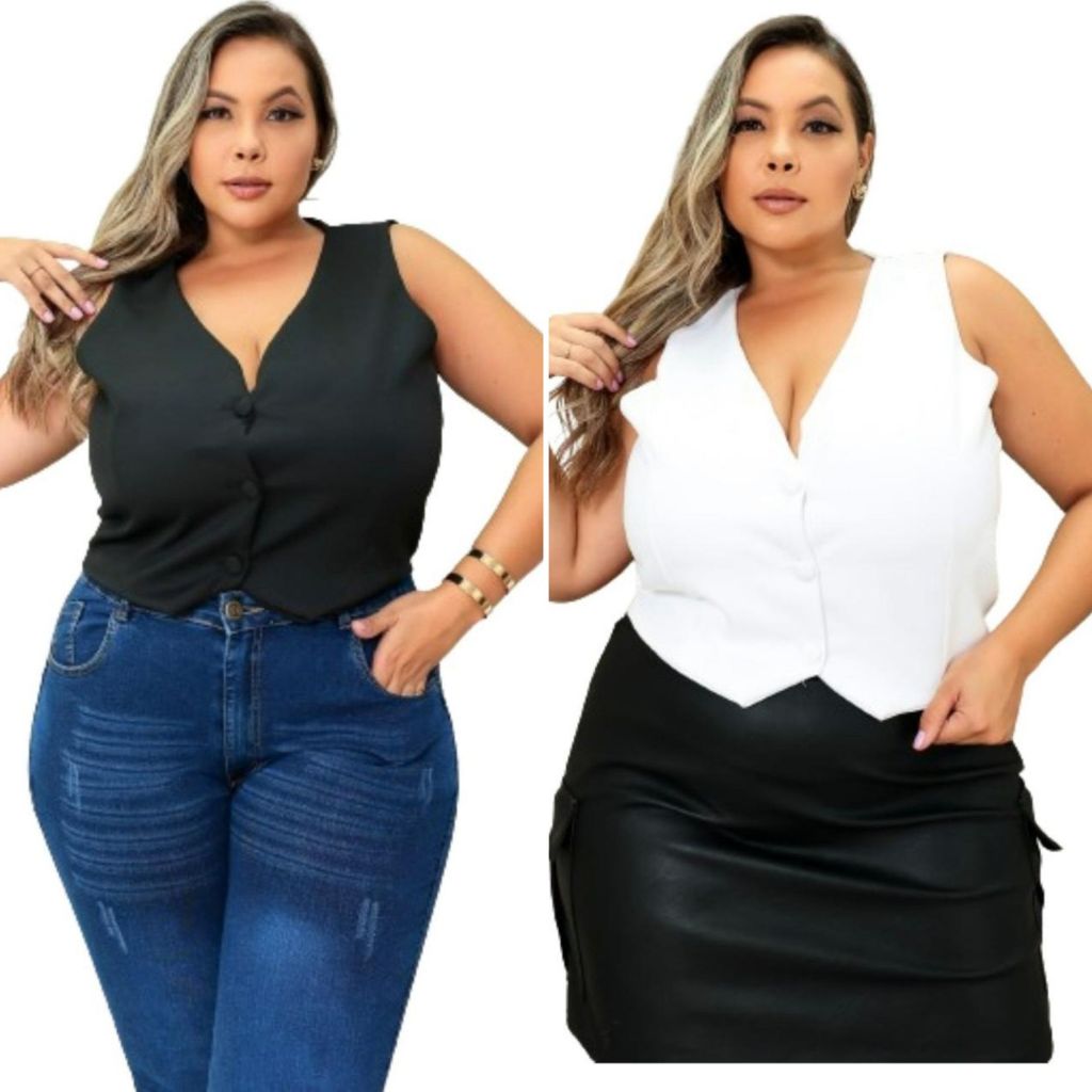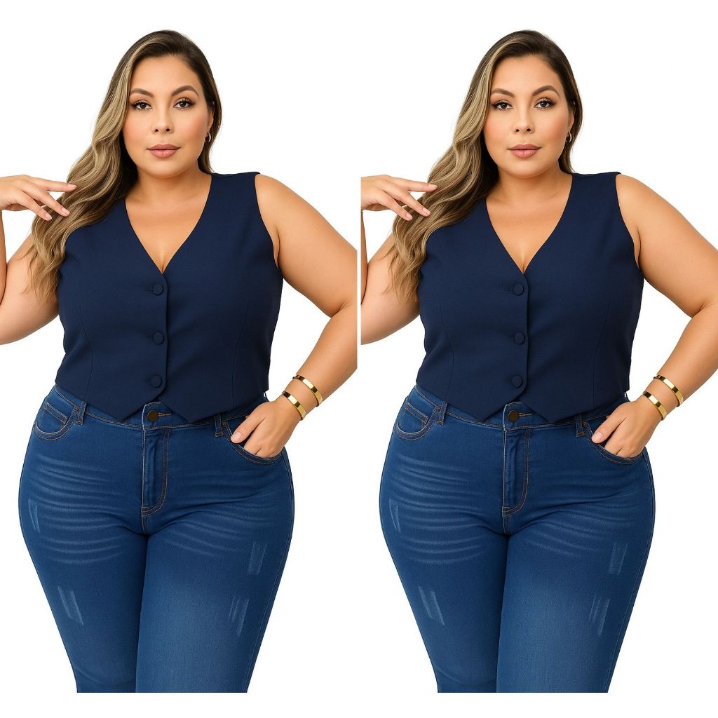 Kit 2 Coletinho Curto Plus Size Feminino Social Com Botões Chic Oferta Melhor Preço