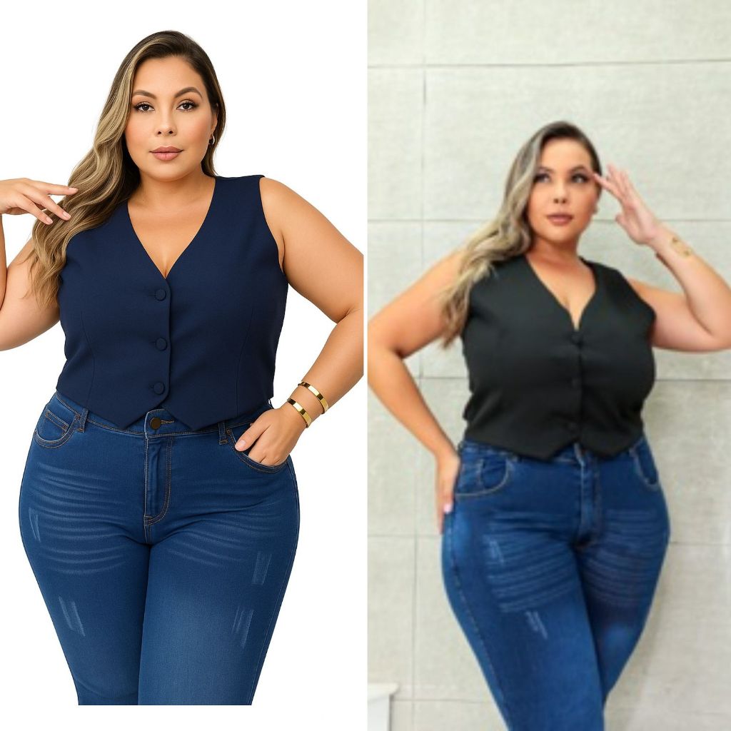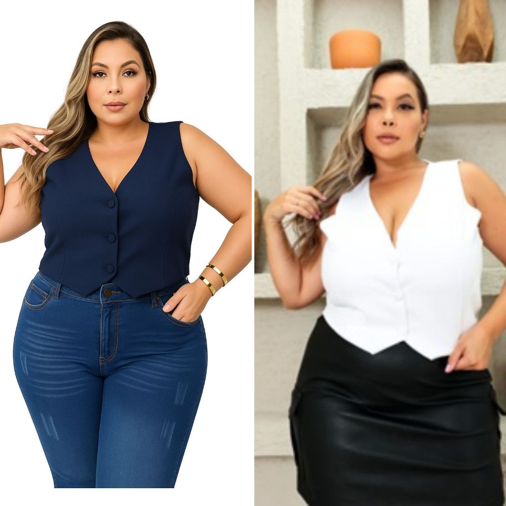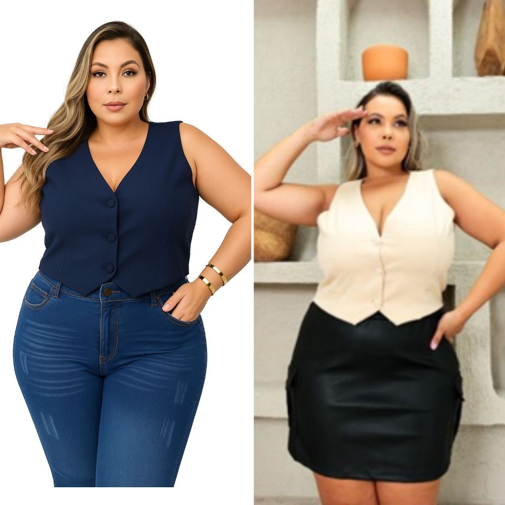 Kit 2 Coletinho Curto Plus Size Feminino Social Com Botões Chic Oferta Melhor Preço