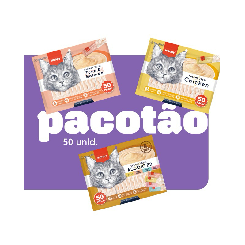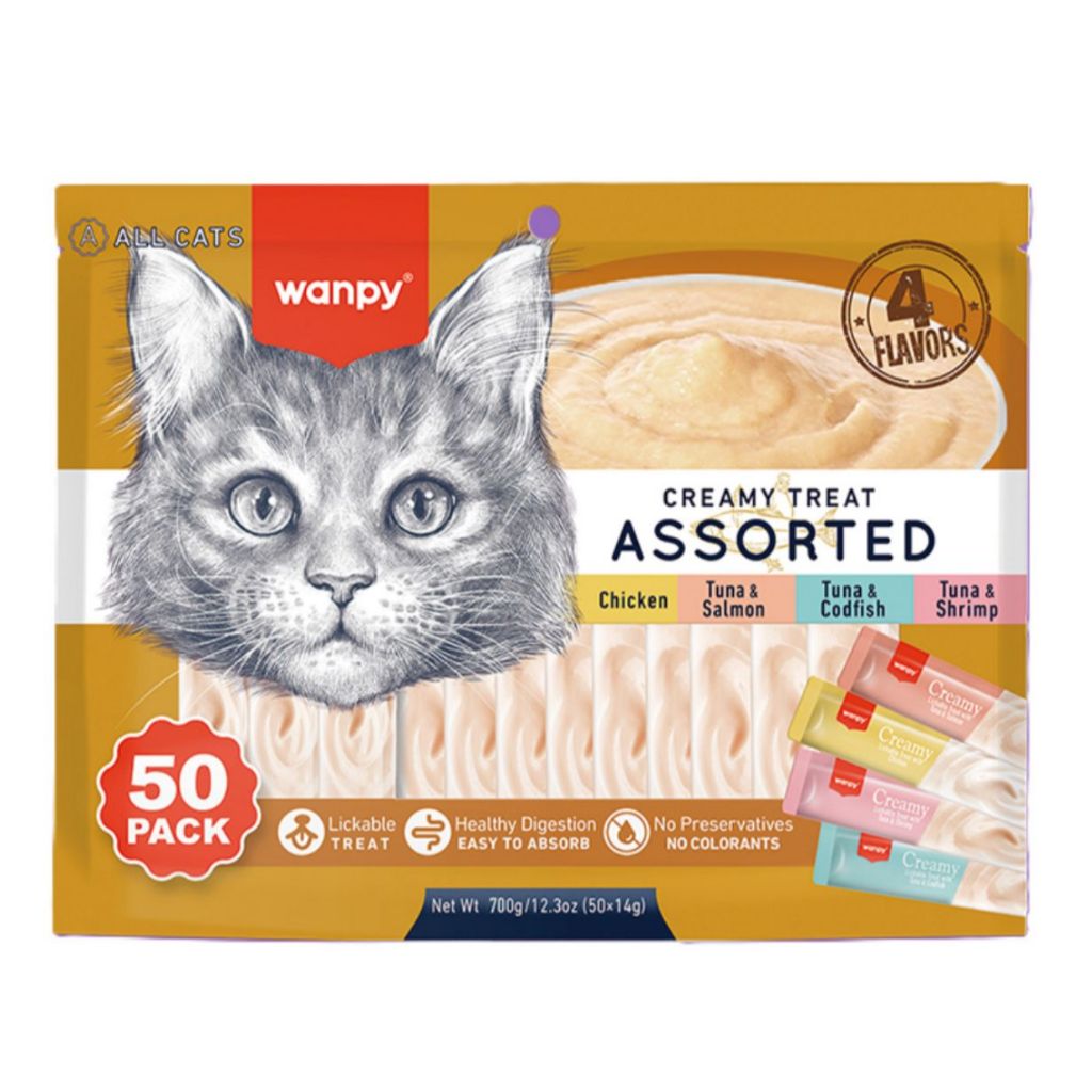Creamy Wanpy Petisco Cremoso Para Gatos 14gx50 Tubos 700g Sabor Sortidos Truly