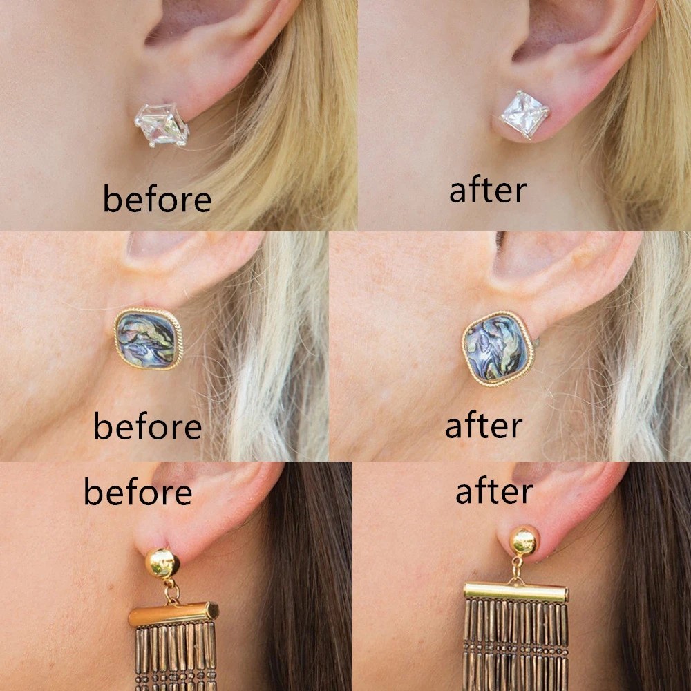 Kit Tarraxas Mágicas Sustentação Brinco Orelha Rasgada Banhado Ouro 18k, Rosé, Prata Anti Alérgico