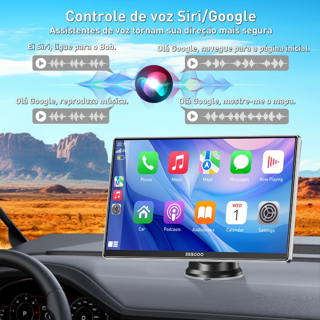 ESSGOO CarPlay Android Auto Car Radio Multimedia Video Player Tela Sensível Ao Toque De 9 Polegadas Portátil Com USB AUX