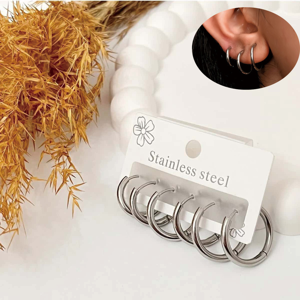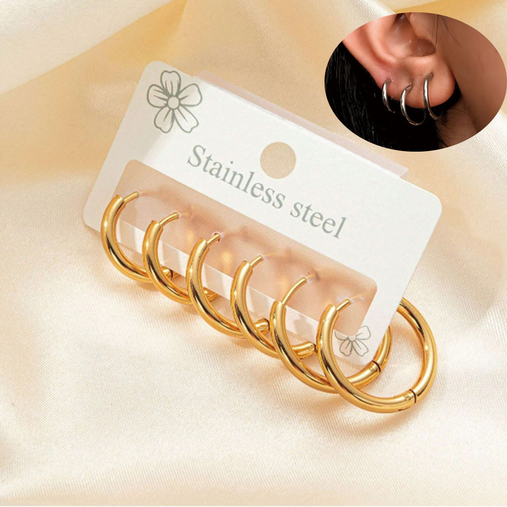 1/3/6 pares de brincos clássicos da moda, Material de aço inoxidável