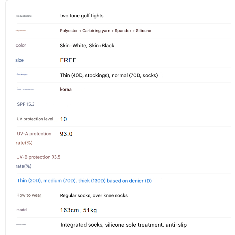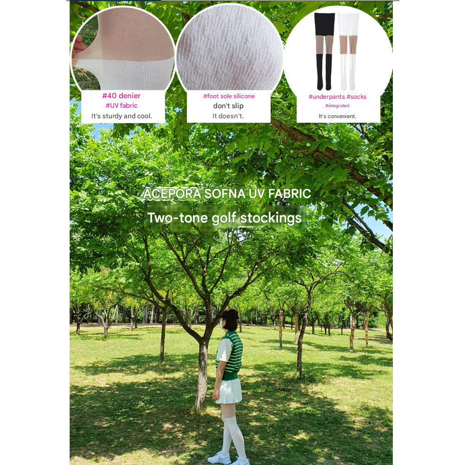 [Coréia] Meias De Golfe De Dois Tons Com Proteção UV (Fps 15.3) Branco , Preto Gratuito (Tamanho Único Serve Para A Maioria)