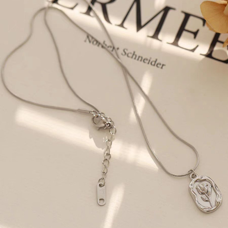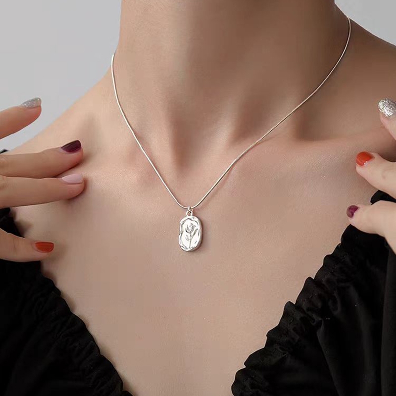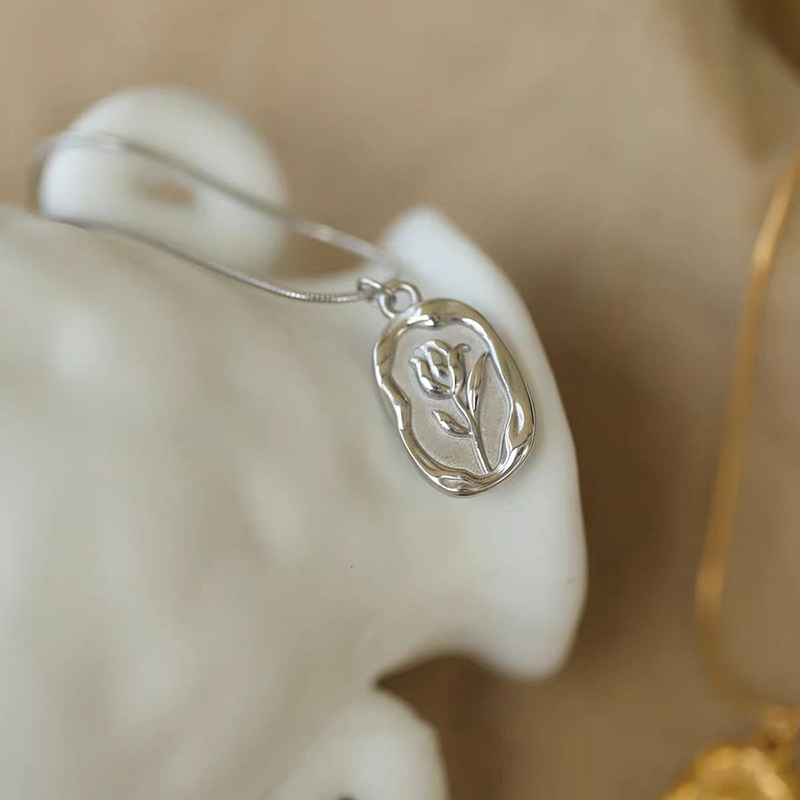 Colar de tulipa retrô brilhante em relevo, Material de aço inoxidável, à prova de suor, à prova d'água, não desbota, tex