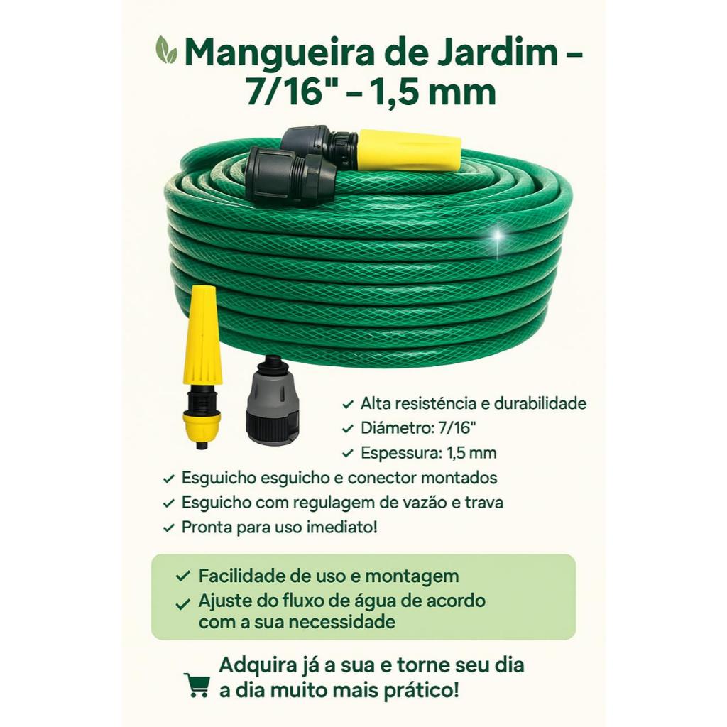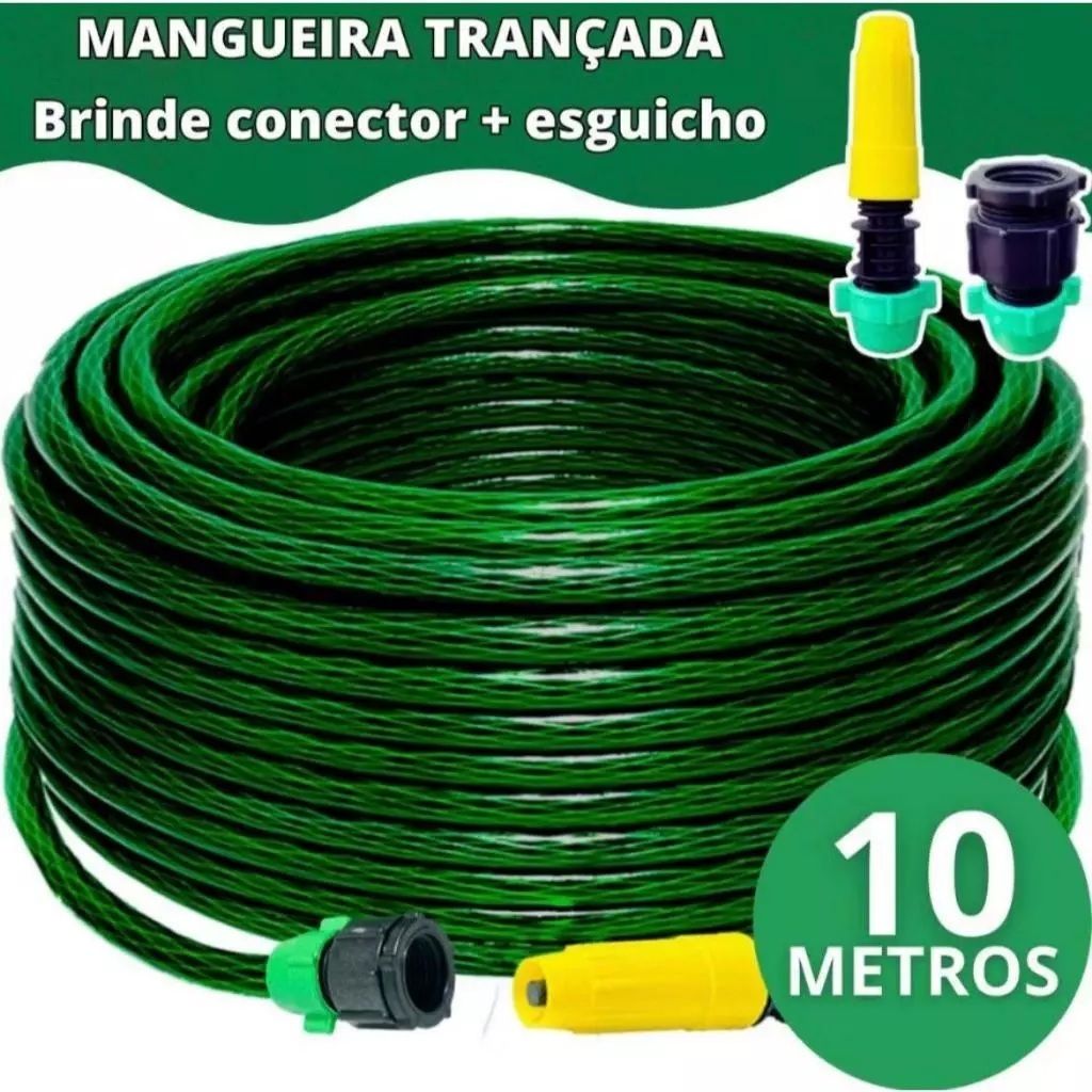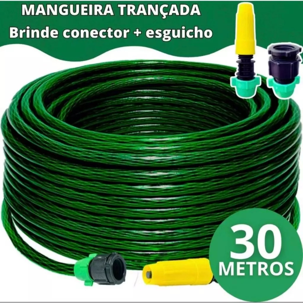 Mangueira De Jardim Trançada Reforçada Completa Com Esguicho e Conector 5/10/15/20/25/30 Metros