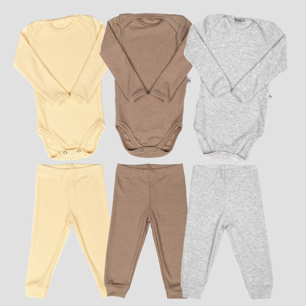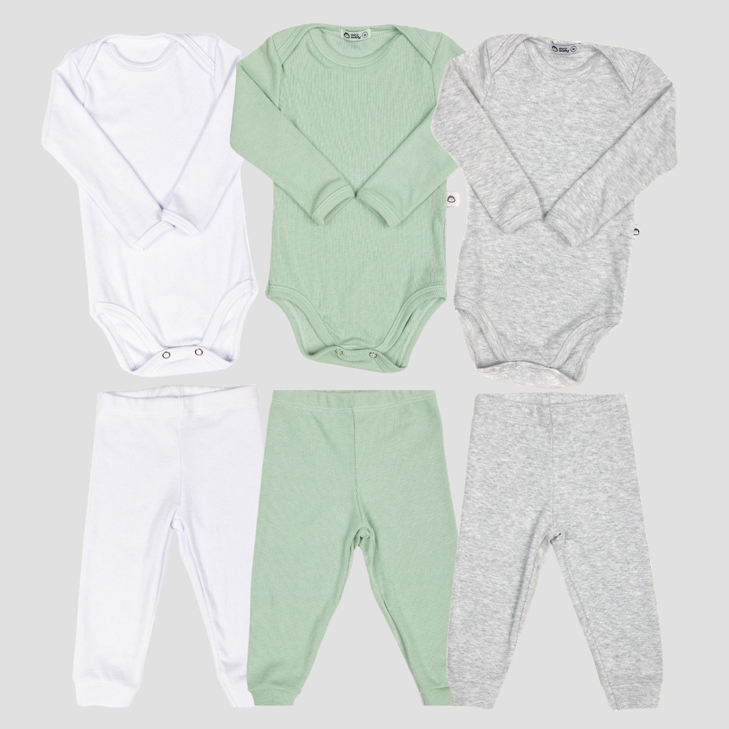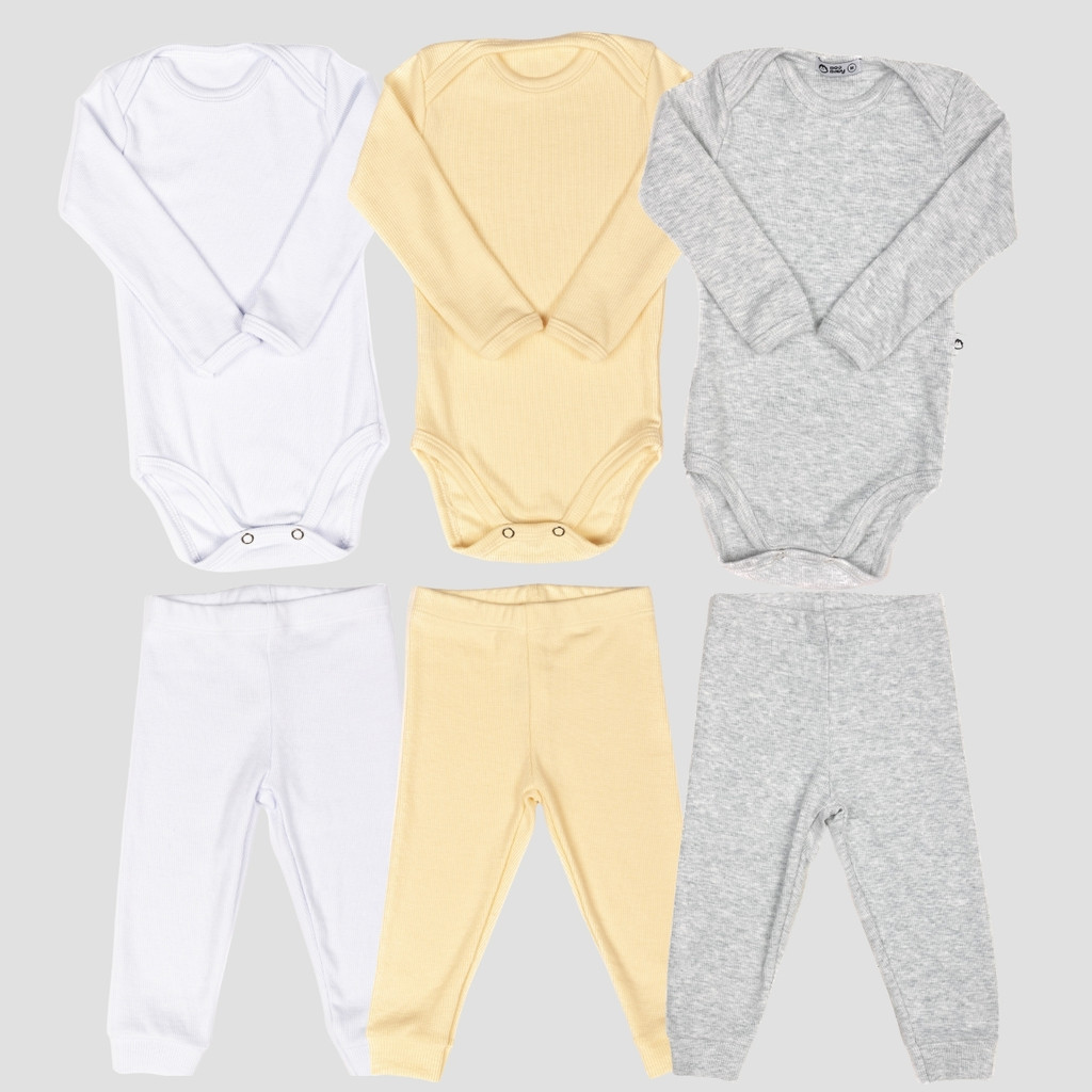 Kit 6 Peças Bebê RN ao GG Body Manga Longa e Calça Pagão Canelado Comfort 03k3