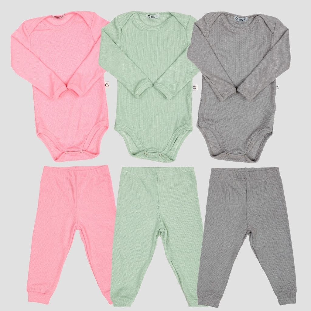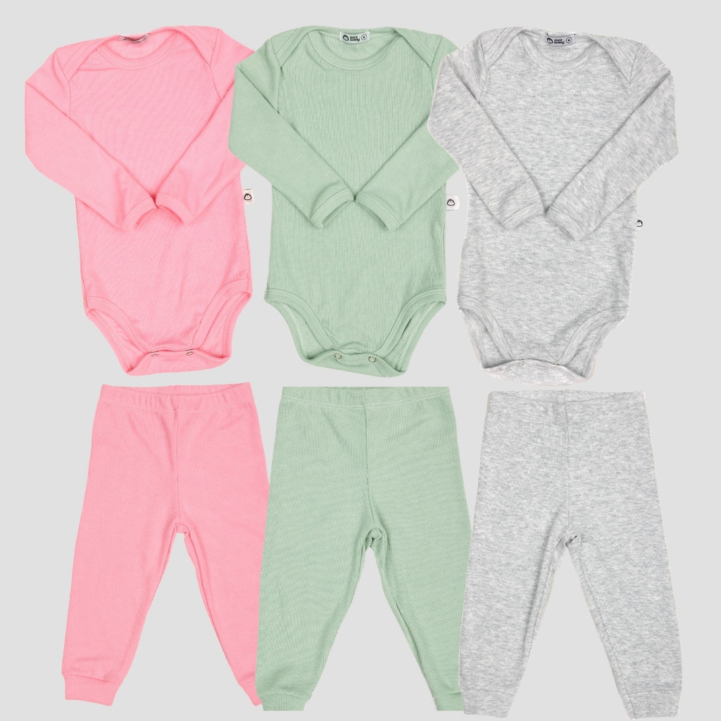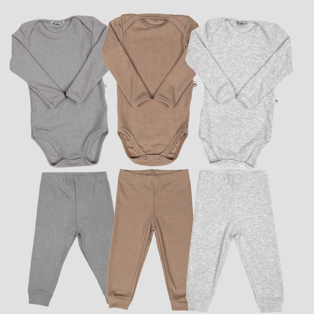 Kit 6 Peças Bebê RN ao GG Body Manga Longa e Calça Pagão Canelado Comfort 03k3