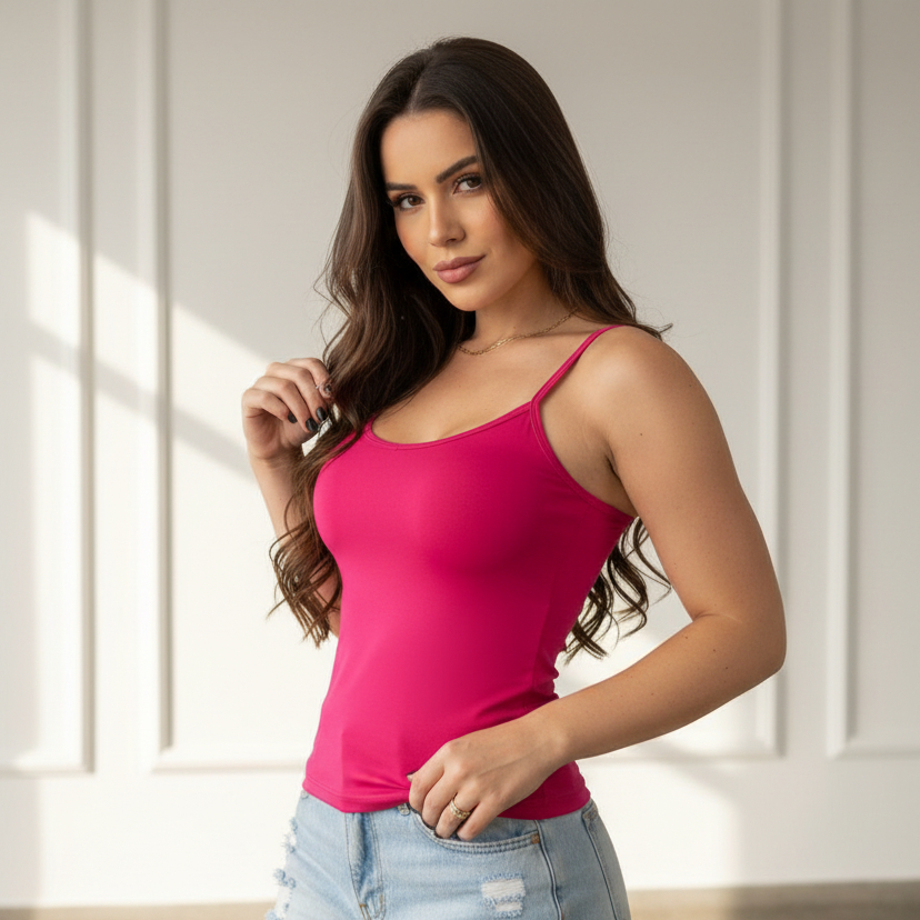 Promoção Regata Alcinha Bojo Lisa Feminina Suplex Básica Regatinha