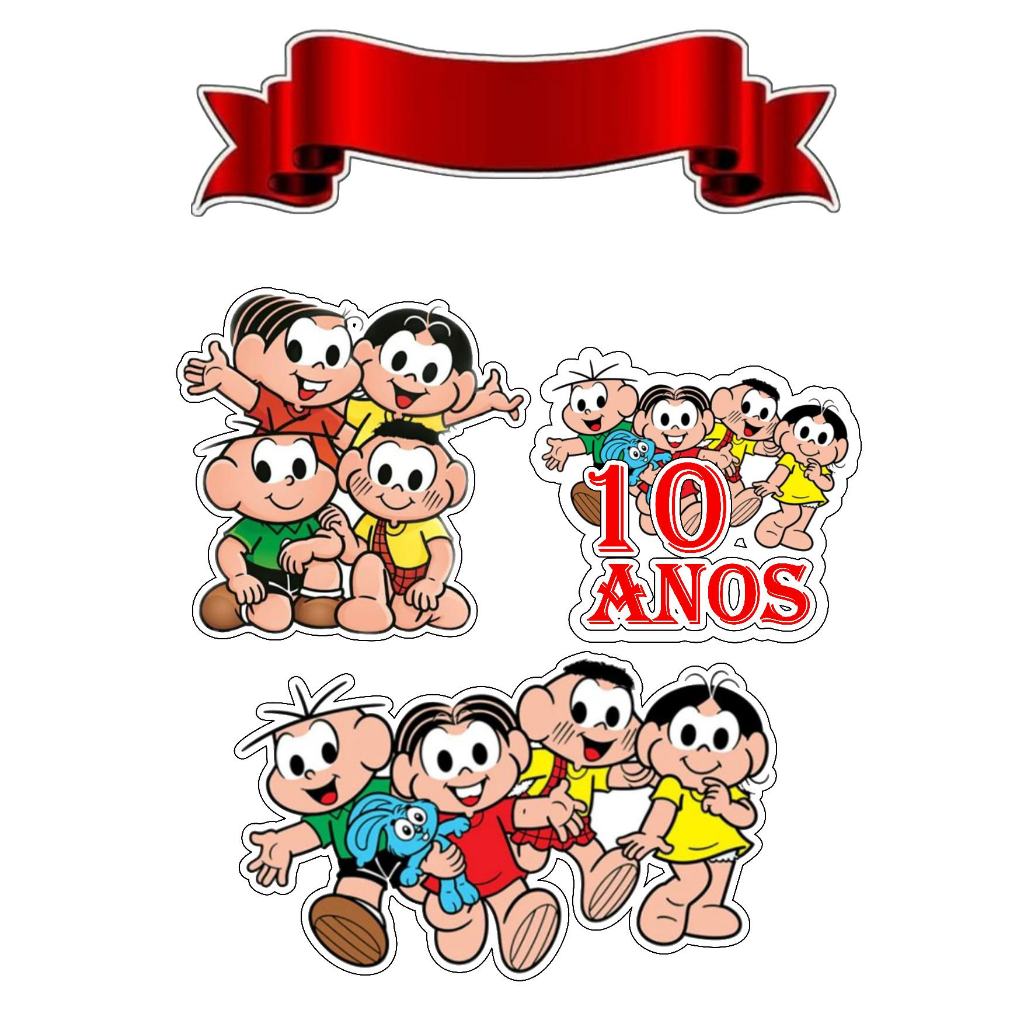 Topo Topper de Bolo Personalizado Turma Da Monica Com Nome e Idade