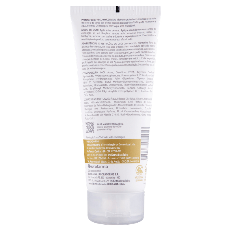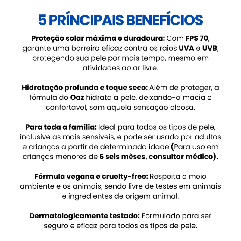 PROTETOR SOLAR OAZ FPS 70 200- CORPO E ROSTO COM TOQUE SECO CORPO E ROSTO 200 ML 1UND