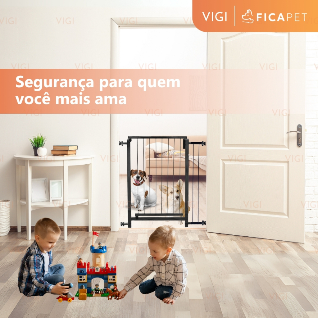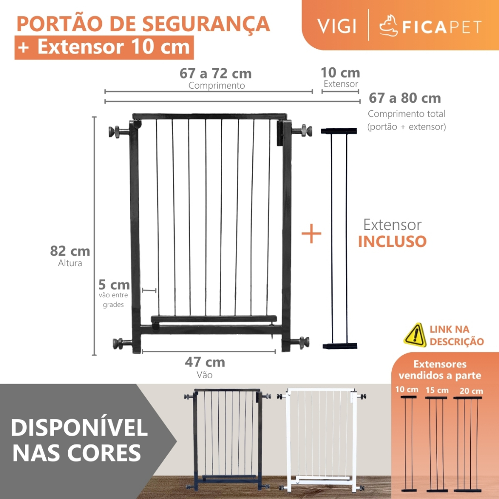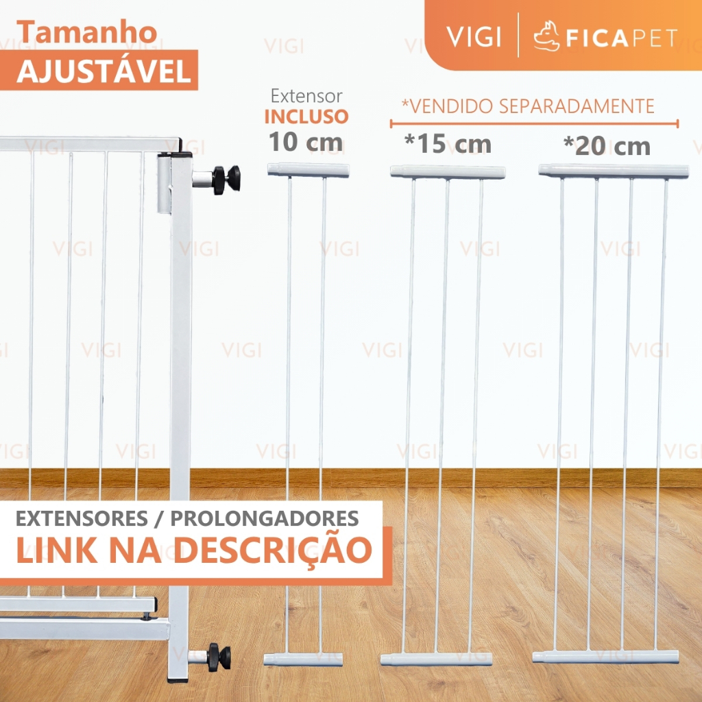 Portão Segurança Pet Portãozinho infantíl fixação de pressão cães 67 a 80cm + extensores 82cm altura