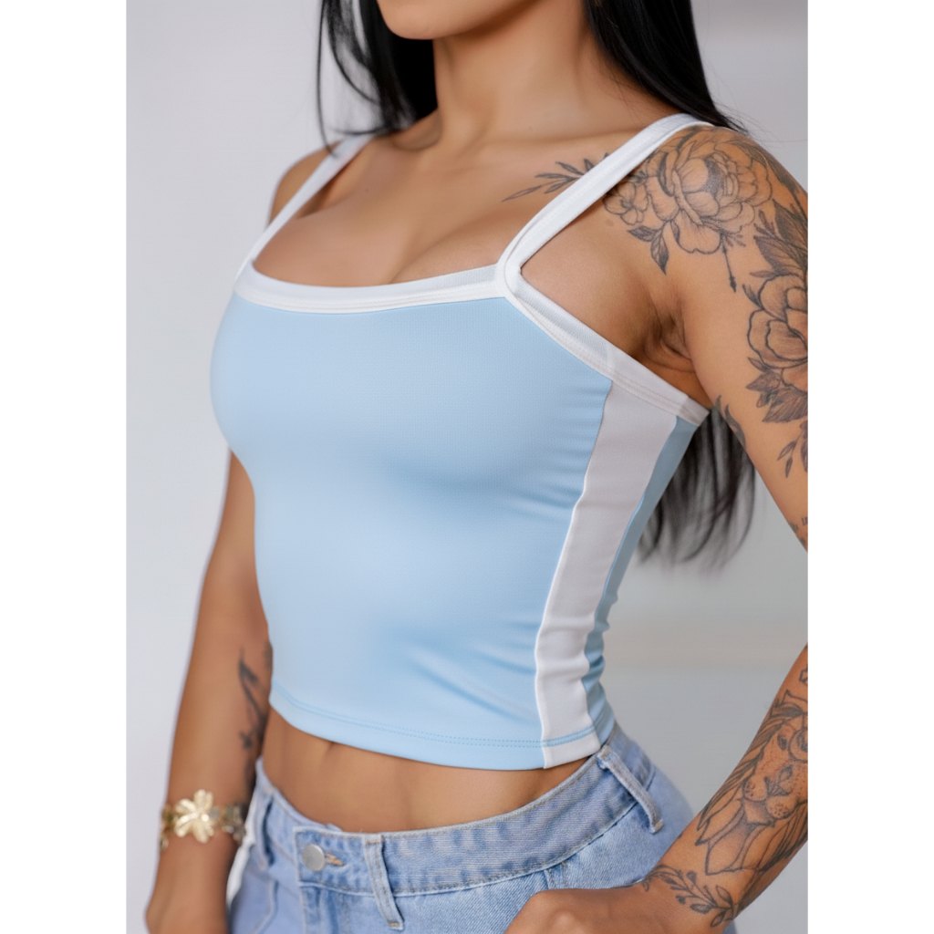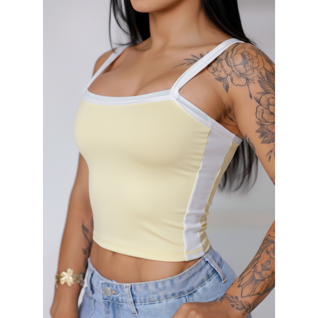 Cropped Feminino Regata Básico Verão Suplex Com Detalhe Off White Várias Cores