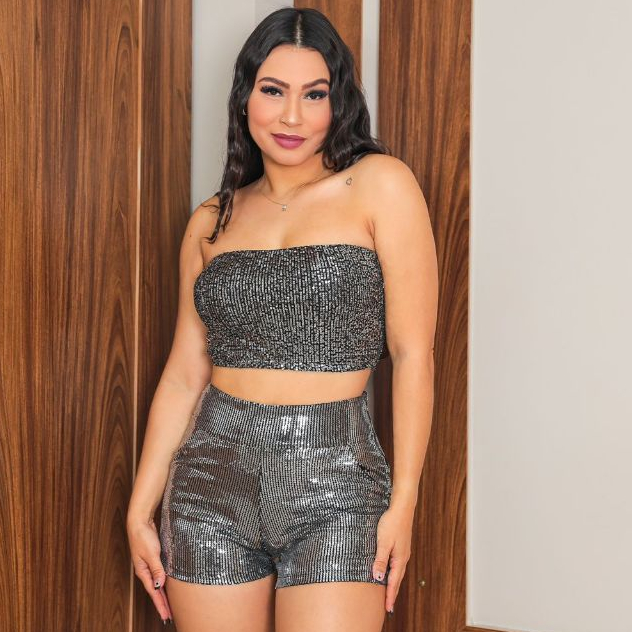 Cropped Com Zíper em Paetê Feminino Brilho Festa Balada Moda Blogueira