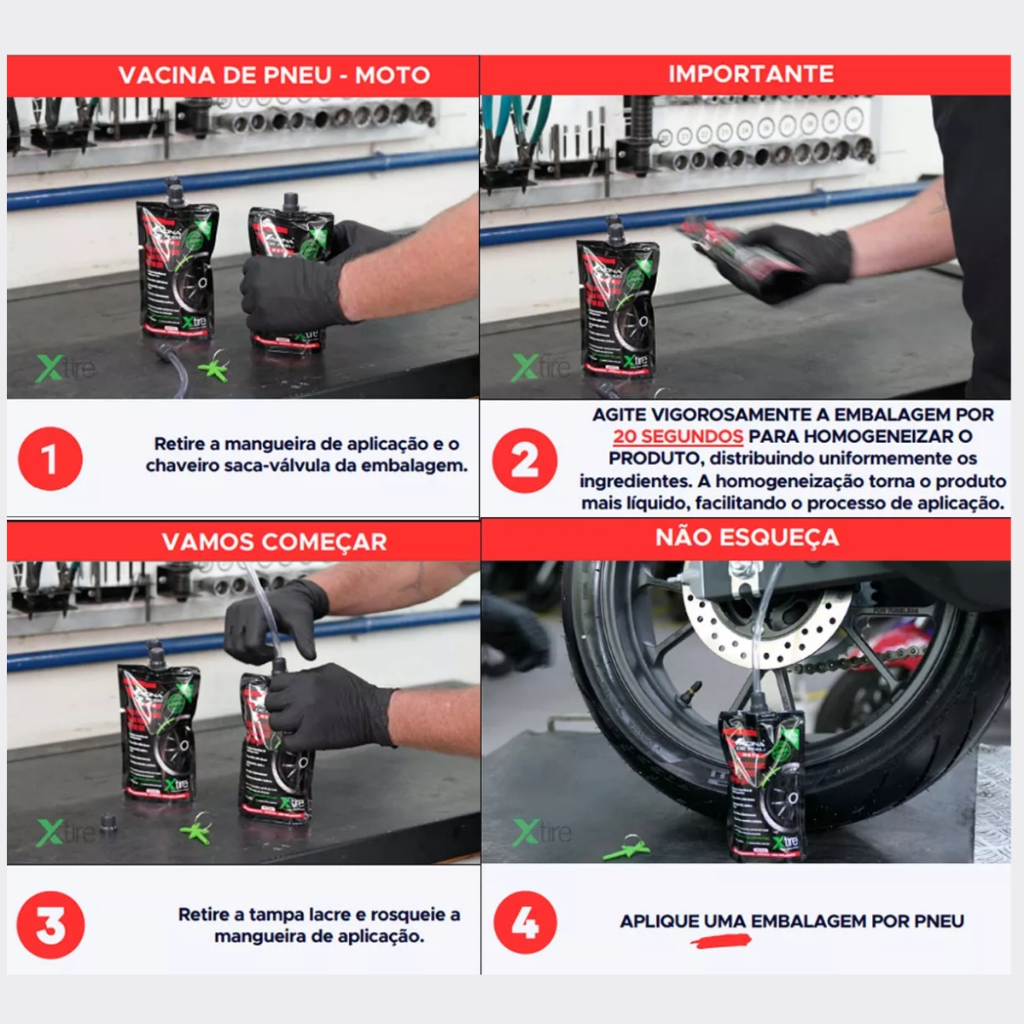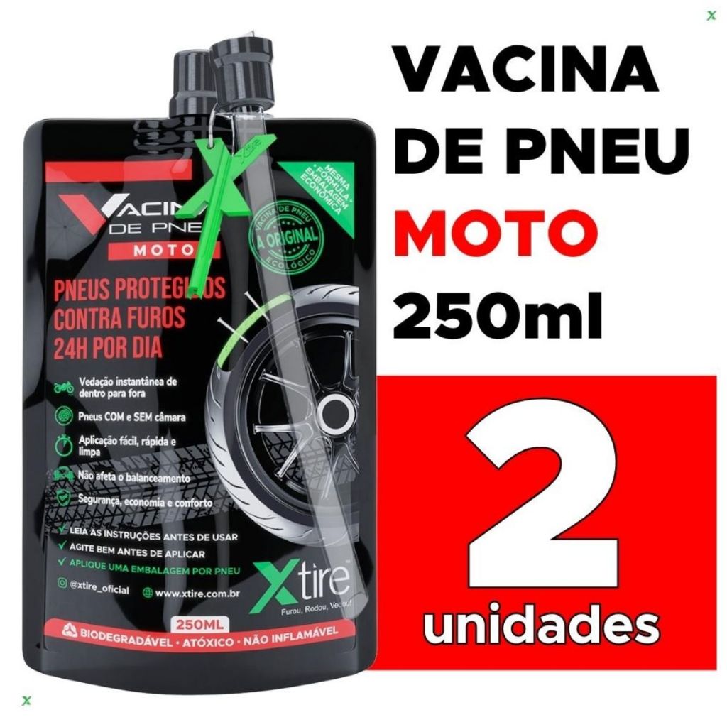 Kit 2 unidades Vacina de Pneu moto Xtire P/ Pneus com Câmara e sem Câmara Selante de Pneu Antifuro