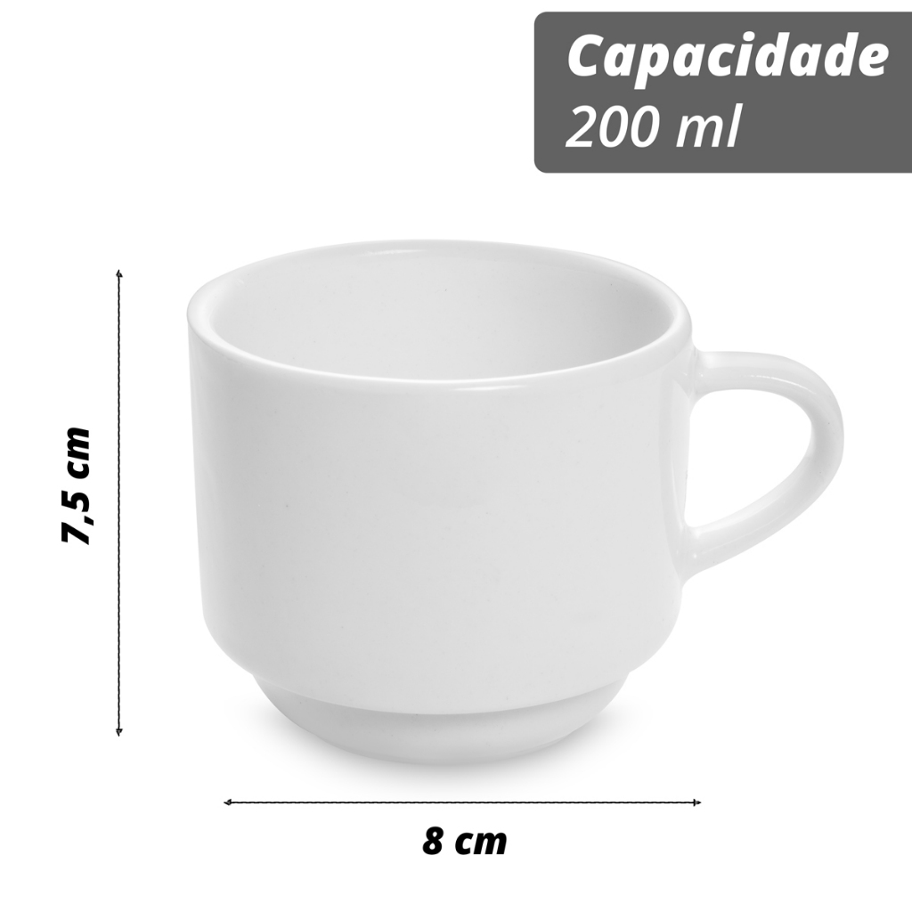 Jogo De Xícaras 6 Peças 200ml Porcelana Branca Café Chá Decoração Cozinha Pousada Hotel Restaurante