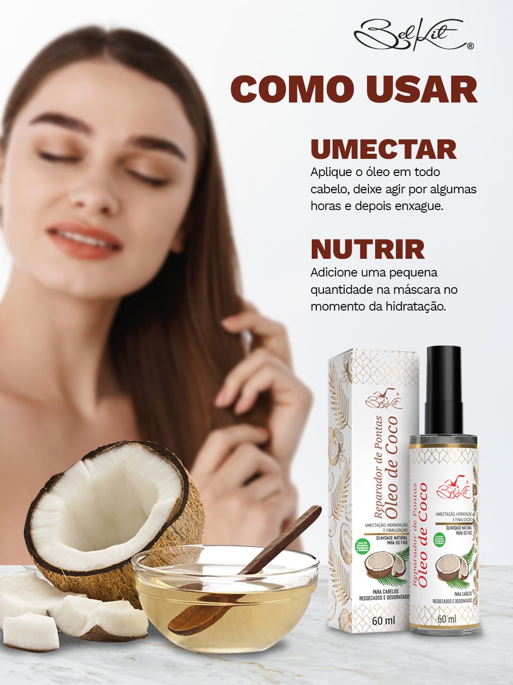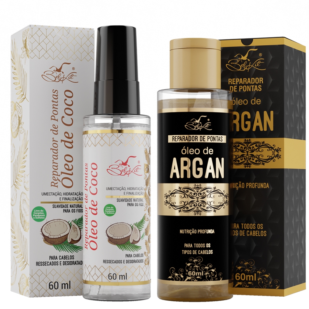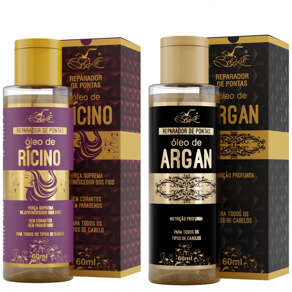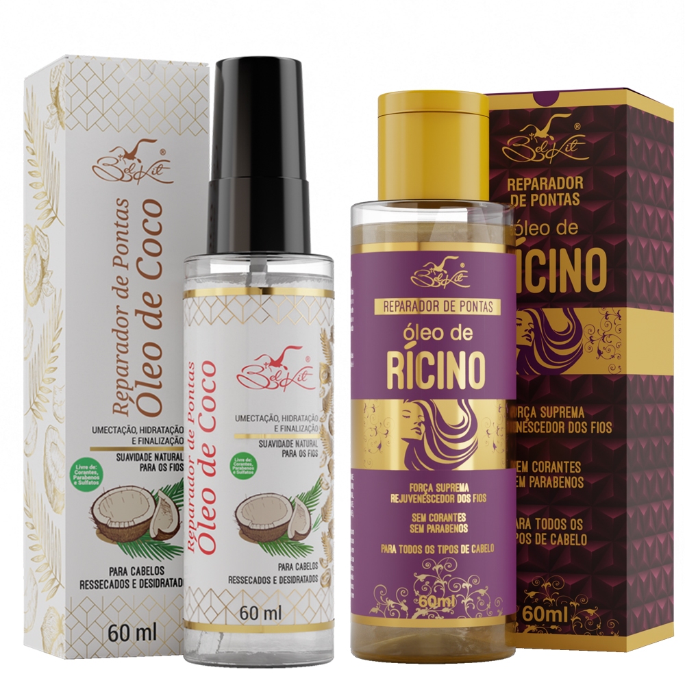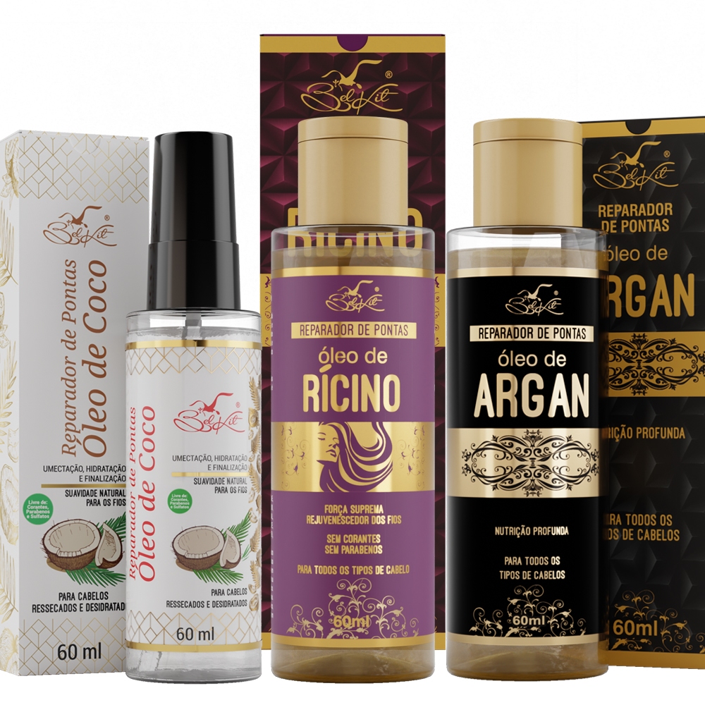 Kit Óleos Para Cabelo Reparadores Capilares BELKIT | Óleo de Argan, Óleo de Coco e Óleo de Rícino