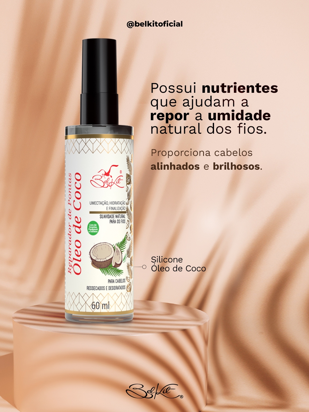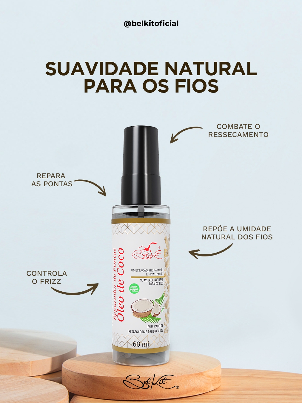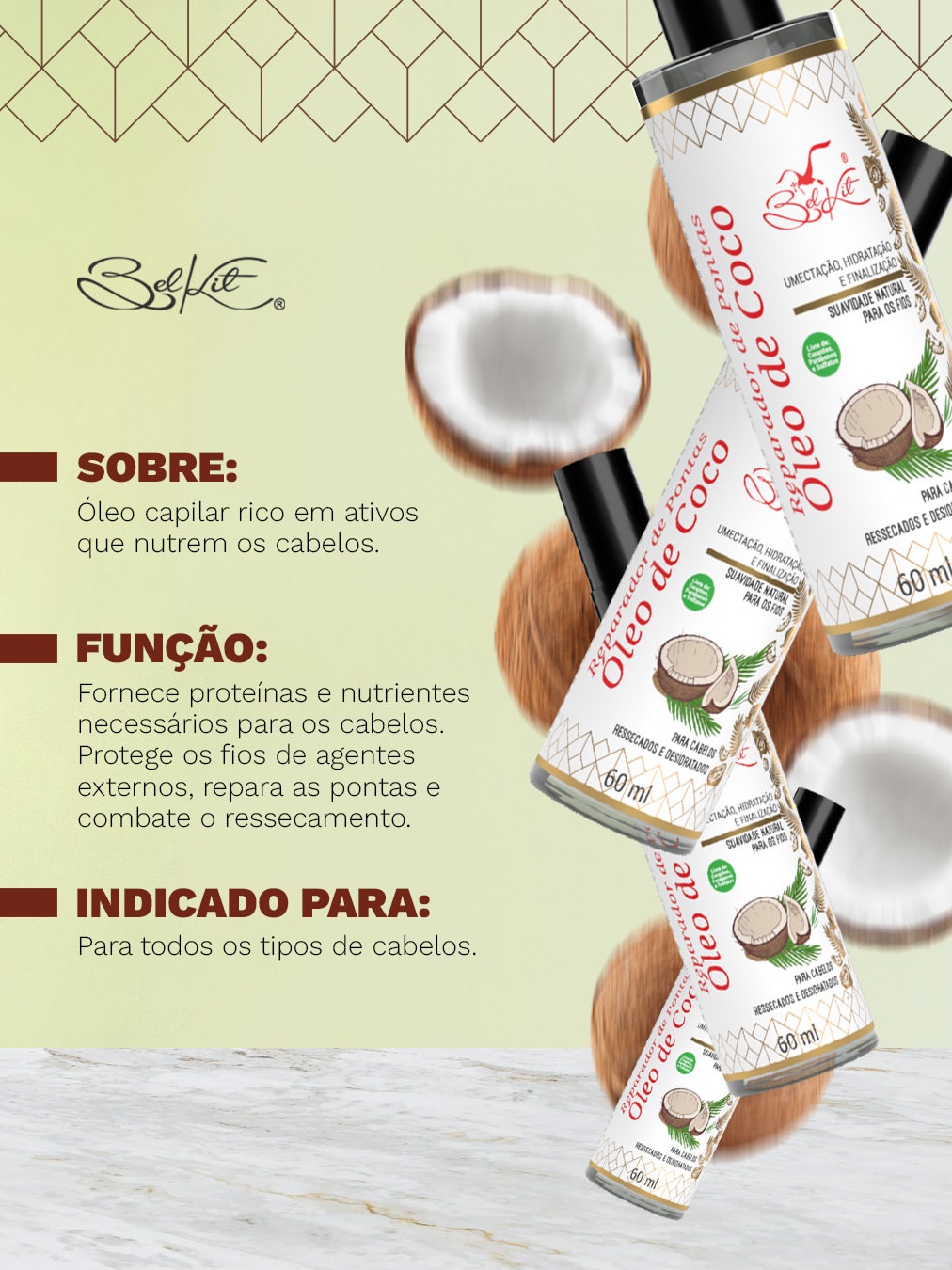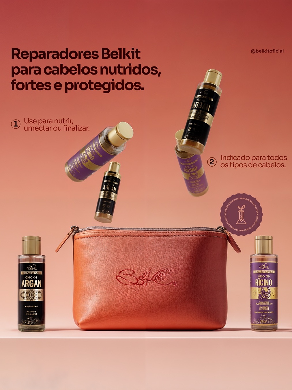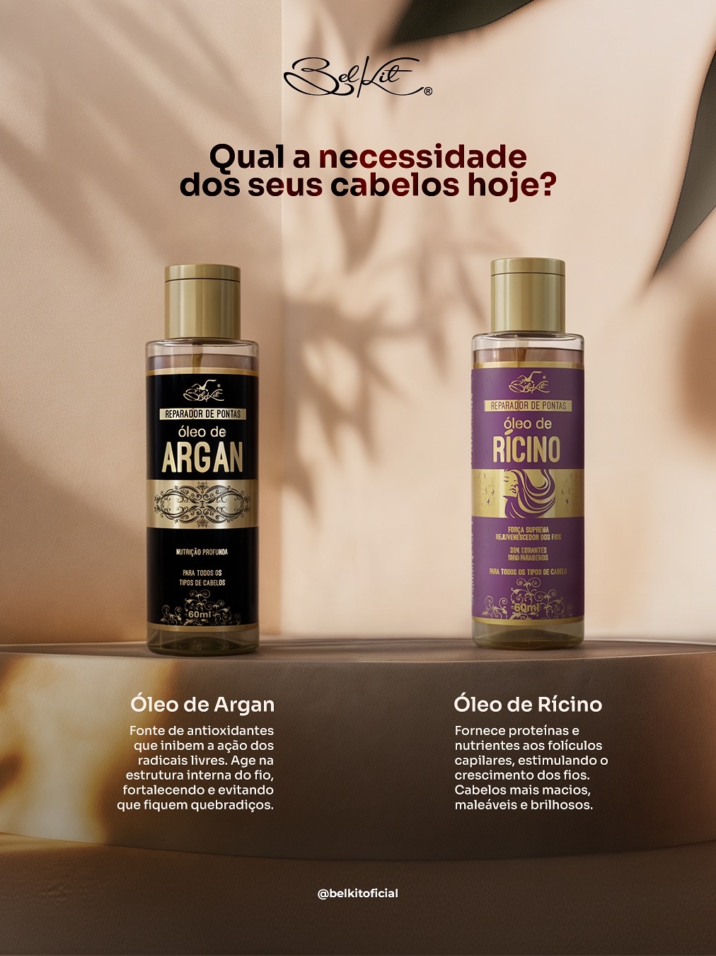 Kit Óleos Para Cabelo Reparadores Capilares BELKIT | Óleo de Argan, Óleo de Coco e Óleo de Rícino
