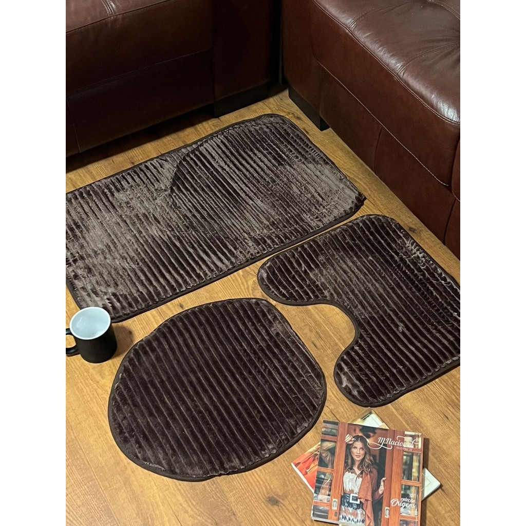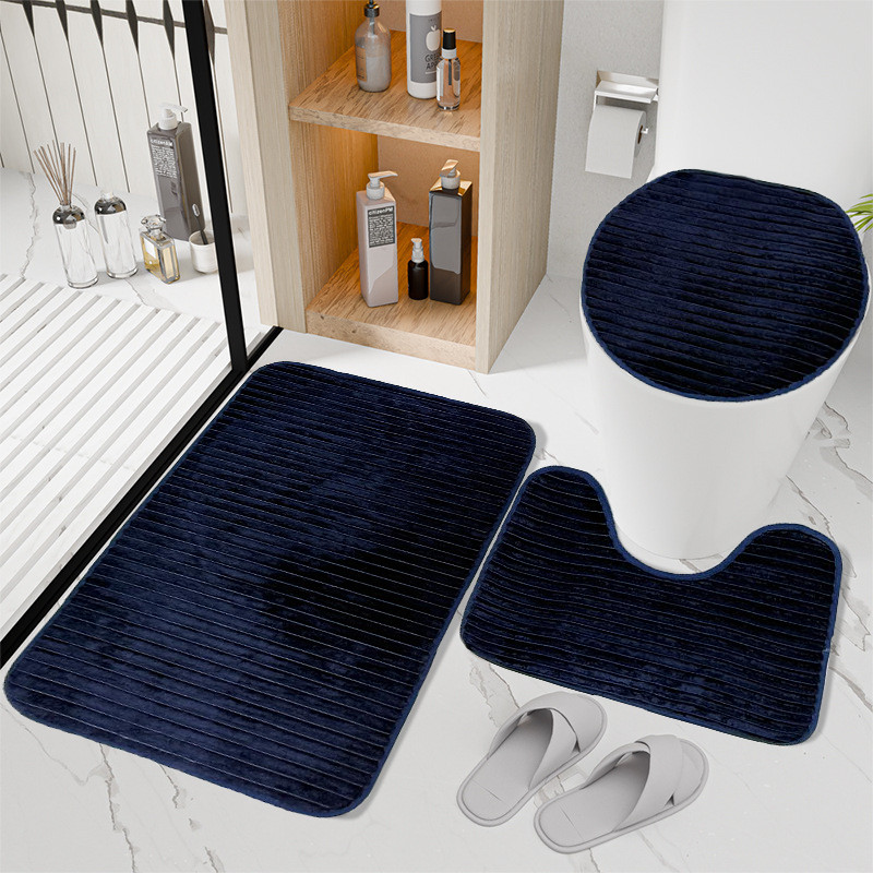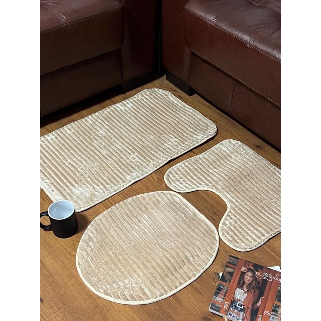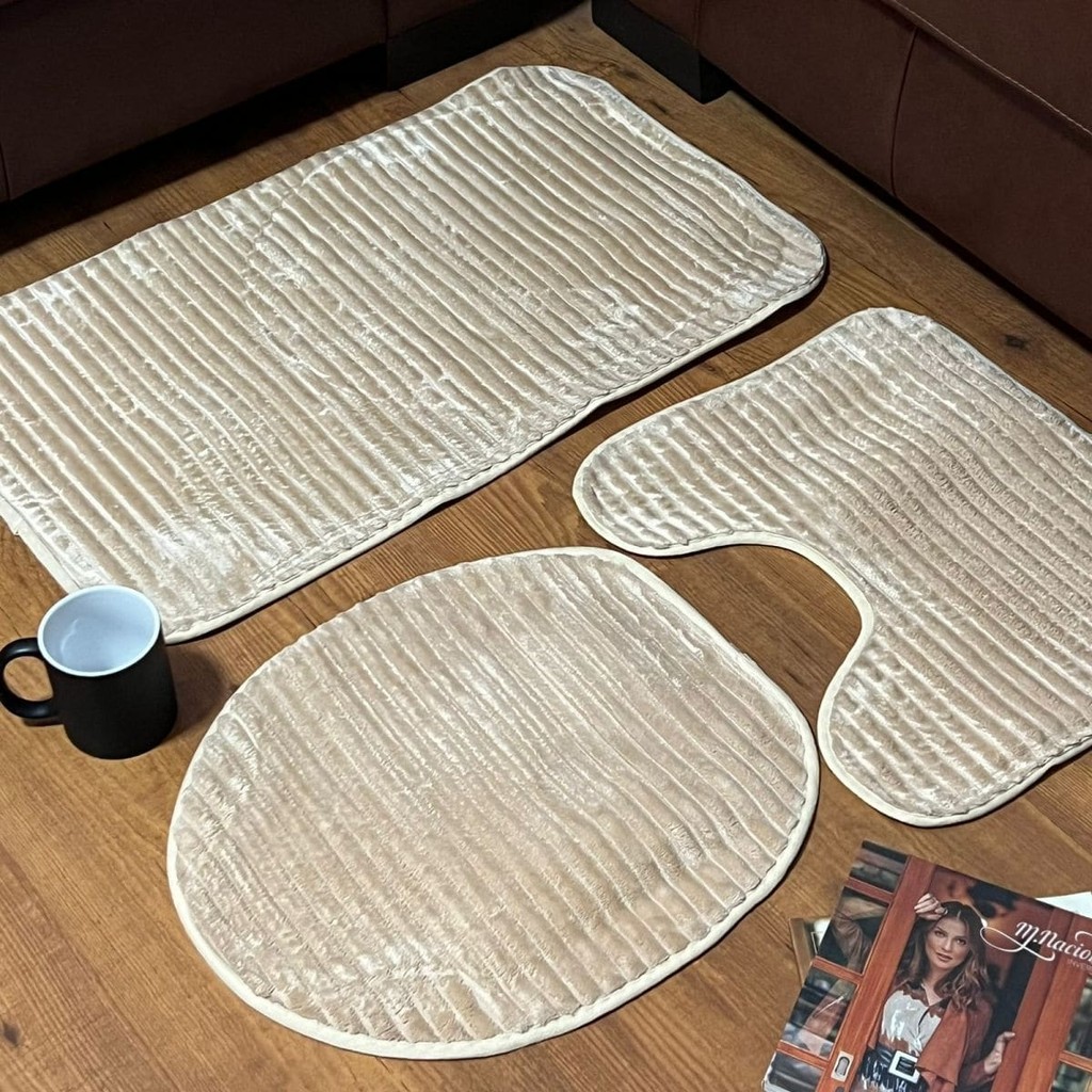 Jogo Tapete 3 Peças Banheiro Canelado Aveludo Antiderrapante