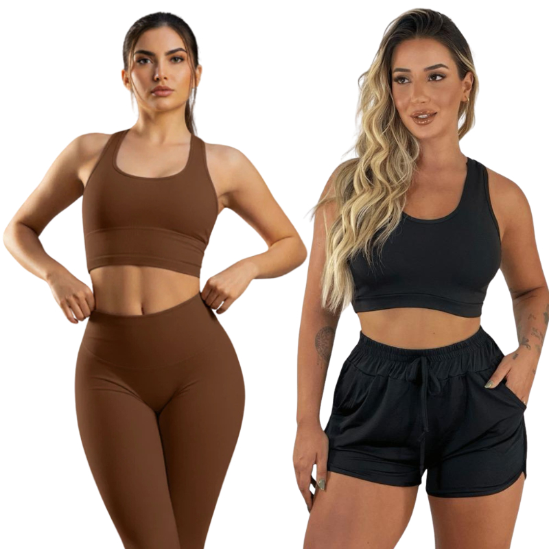 Kit Top Academia Fitness Esporte Sustentação Nadador Regata Adulto Feminino Roupa Roupas Lingerie