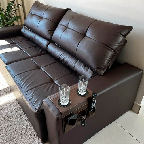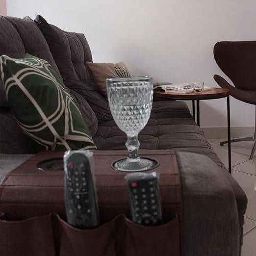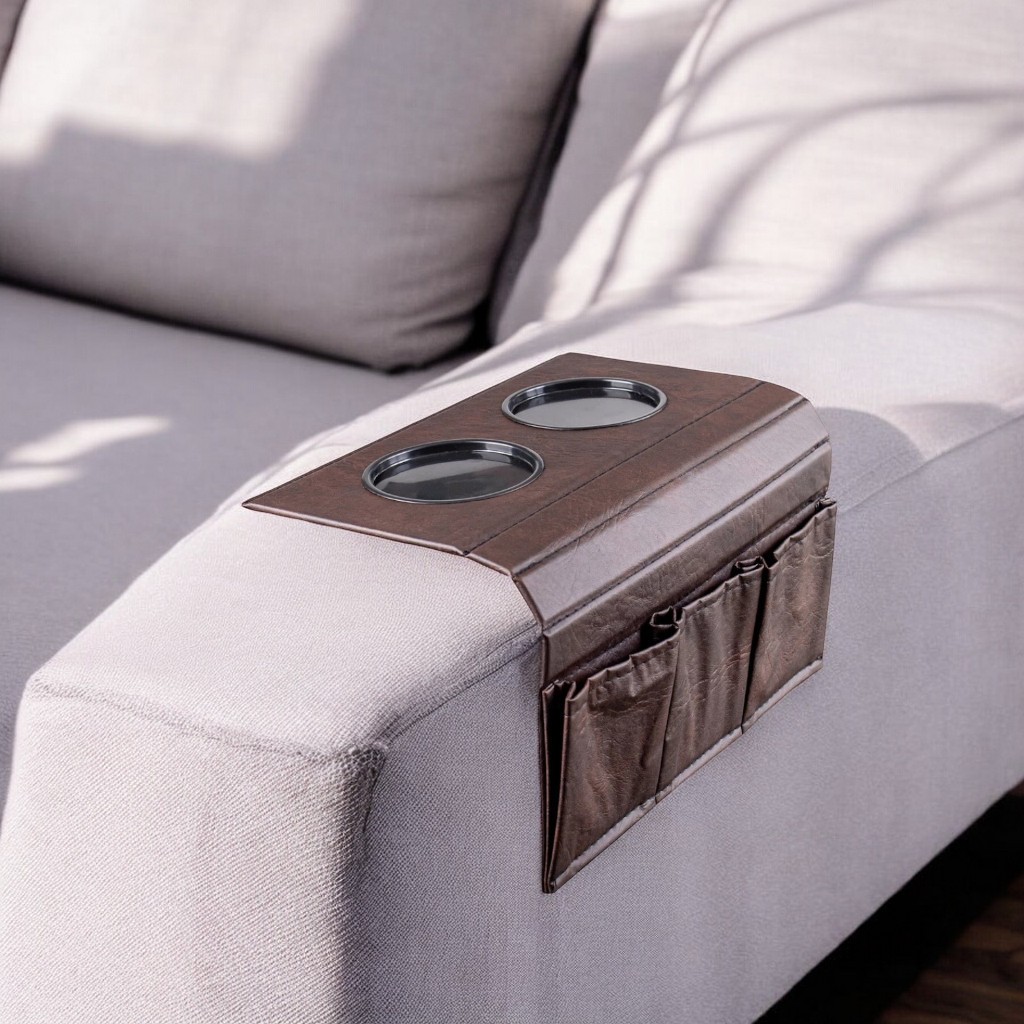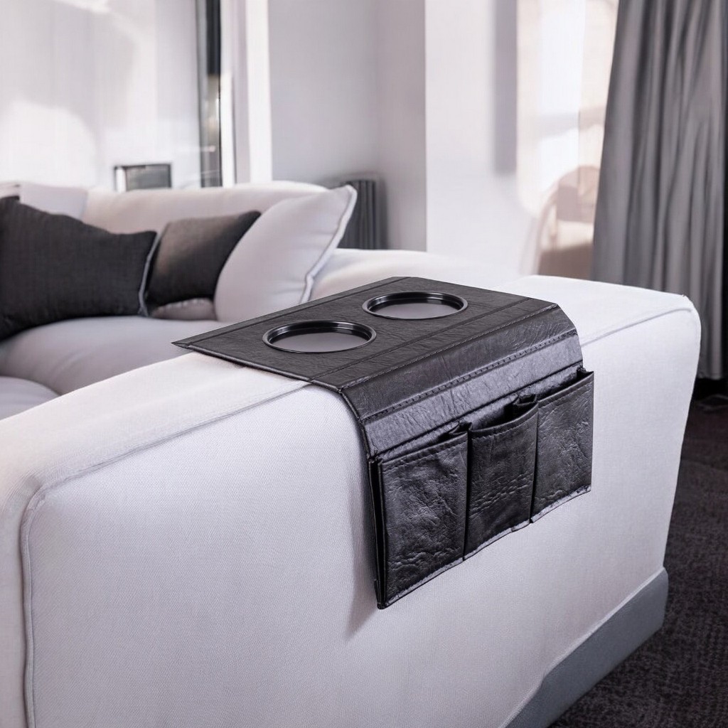 Bandeja Sofá Porta Copos e Controles Estilo Luxo Corino