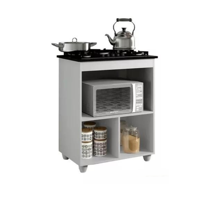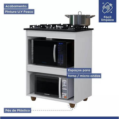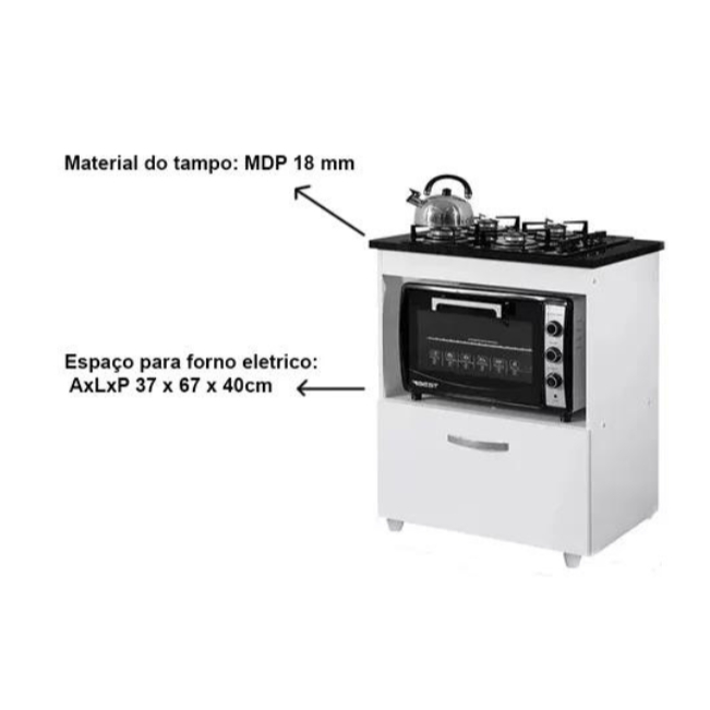 Balcão de Cozinha Turim & Salvia com Porta Kaiki para Cooktop 04 ou 05 Bocas e Forno