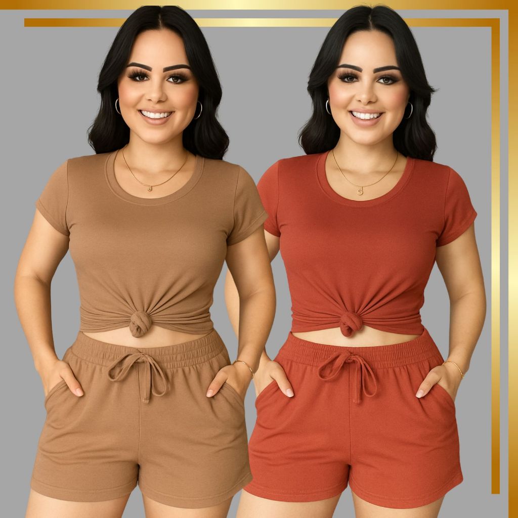 Kit 4 Conjunto Feminino Shorte Blusa ]Casual Festa Dia Dia Formal Leve Verão Desponjado Chic Sporte Tropical Confortavel