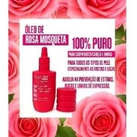 Óleo de Rosa Mosqueta da Max Love é formulado com Rosa Rubiginosa para Corpo Rosto Cabelo Unhas 100% PURO