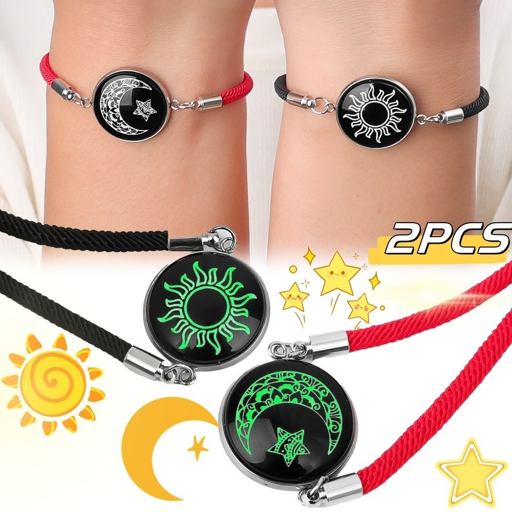 2 Pçs/SET Romântico Luminoso Sol Lua Casal Pulseiras De Vidro A Charme Amizade Jóias Presente Do Dia Dos Namorados