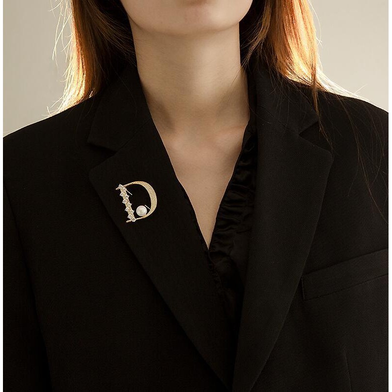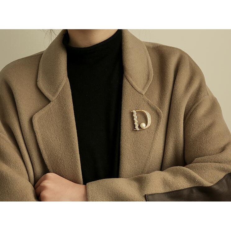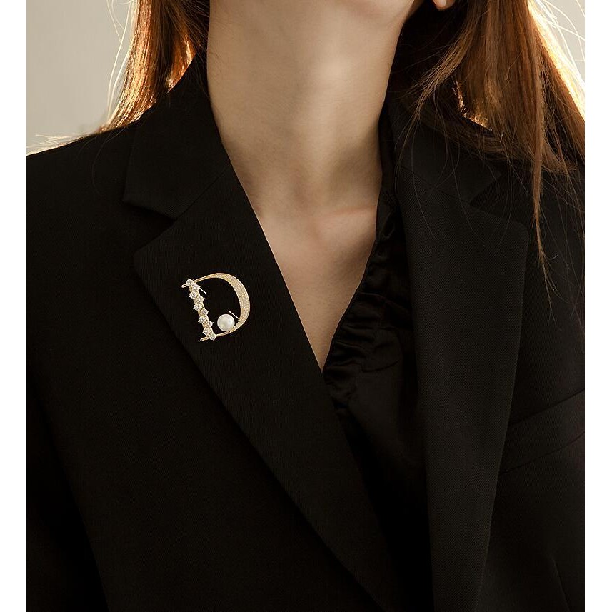 Broche de pérola letra D adequado para acessórios de moda feminina para ternos, casamentos e presentes, presentes de dia