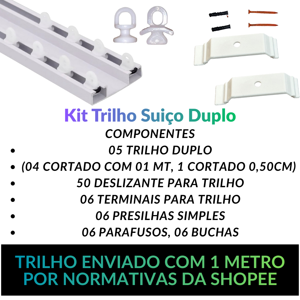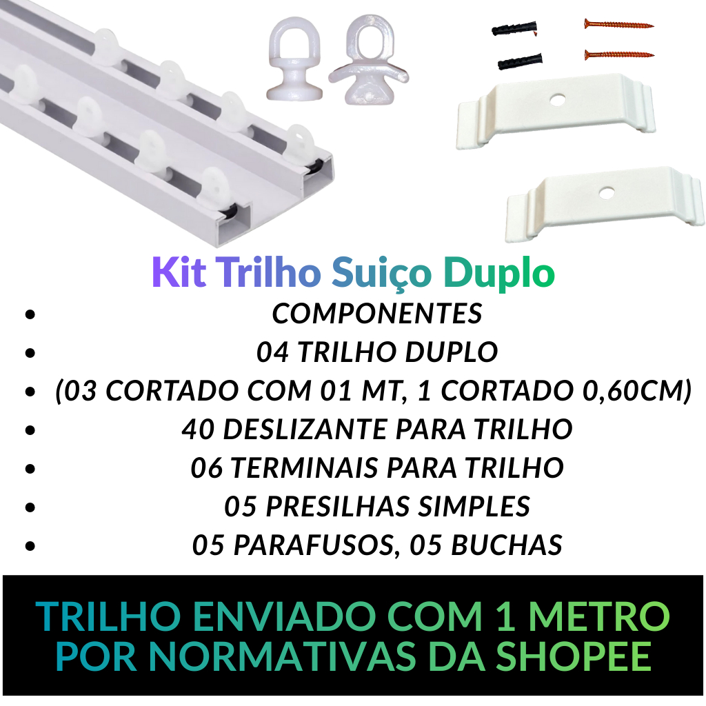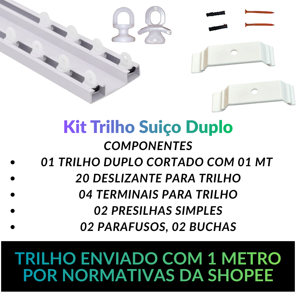 Trilho Suíço Duplo Para Cortina Em Alumínio Branco – Trilho Deslizante Resistente, Pronto Para Instalar Todas Medidas