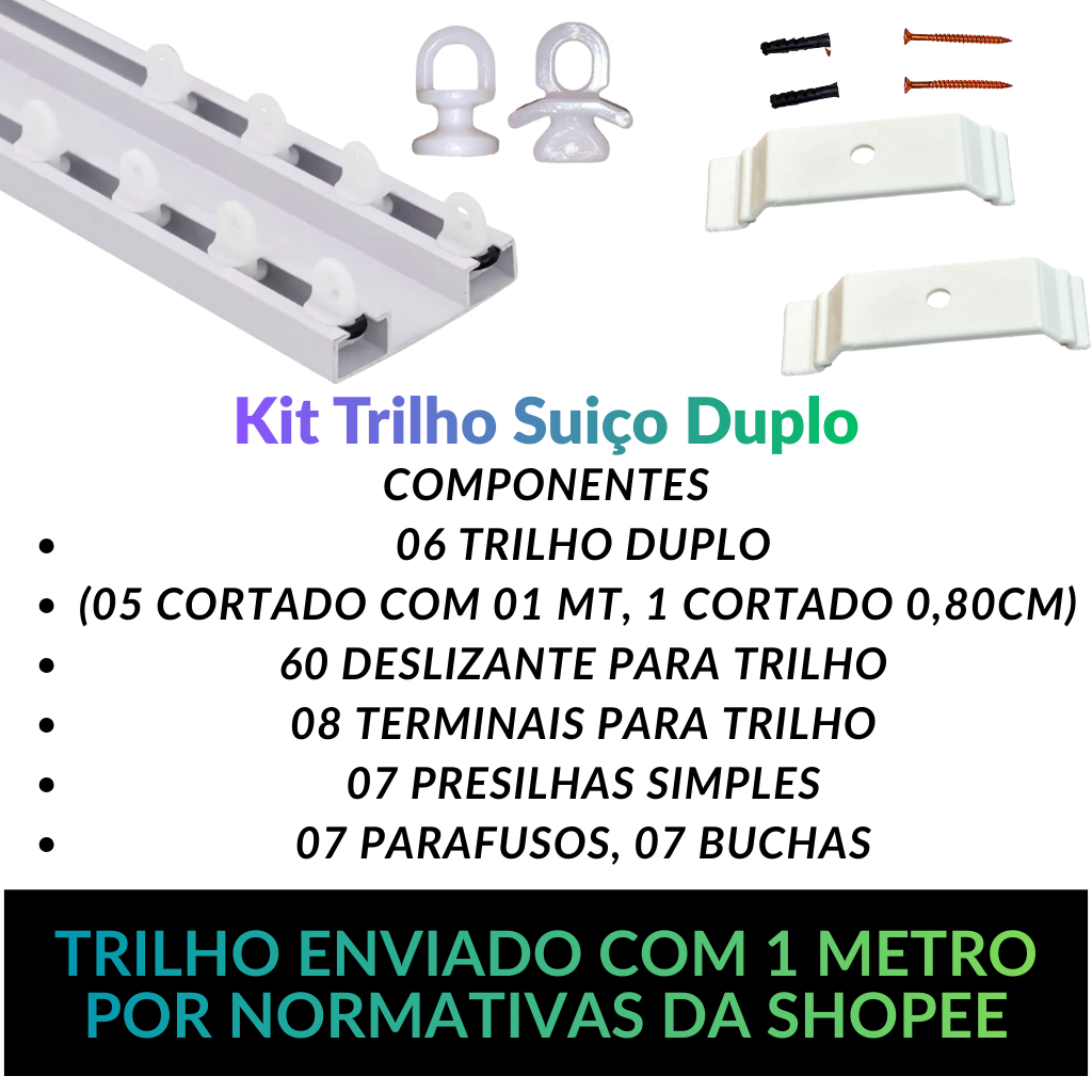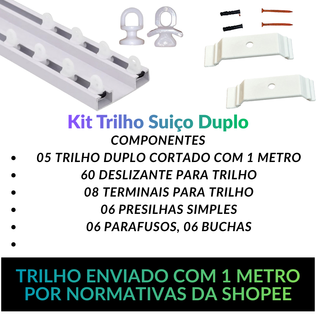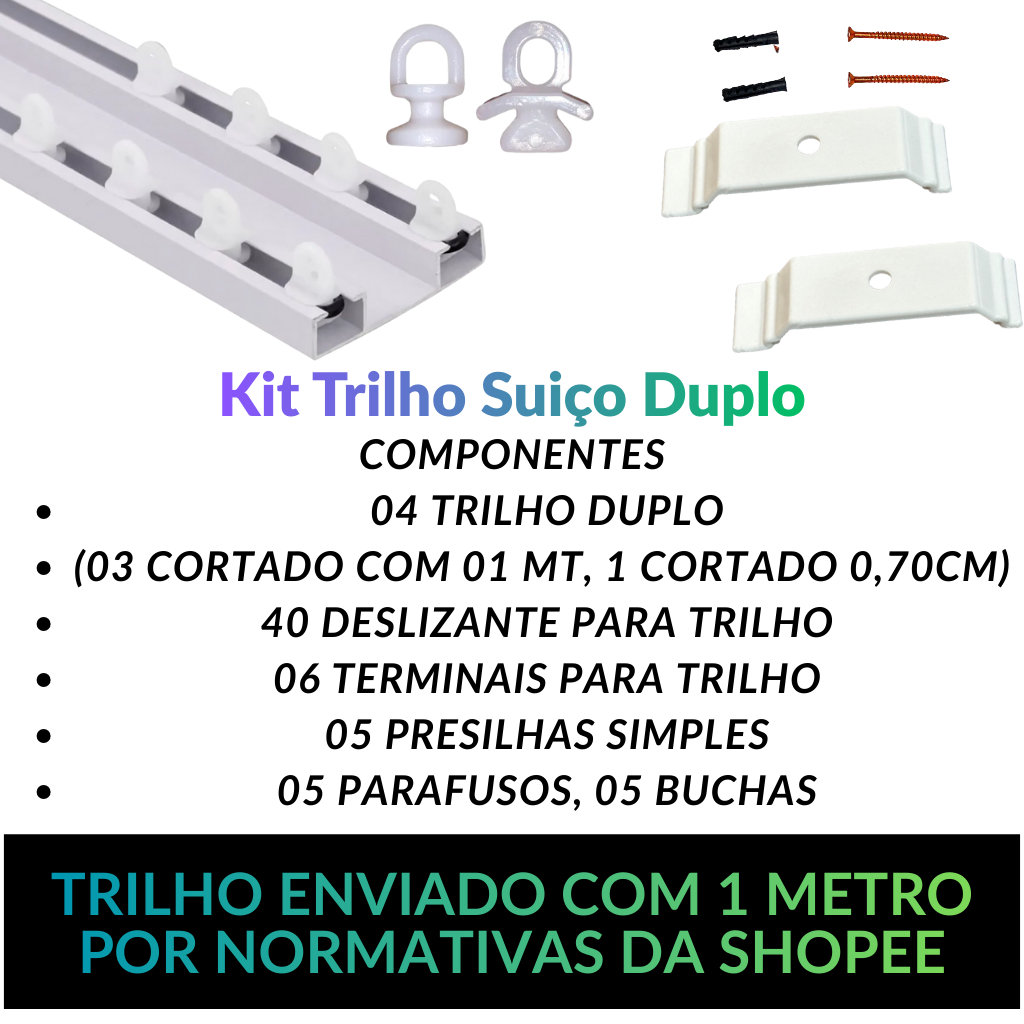 Trilho Suíço Duplo Para Cortina Em Alumínio Branco – Trilho Deslizante Resistente, Pronto Para Instalar Todas Medidas