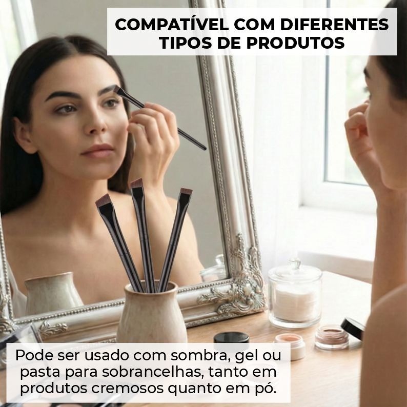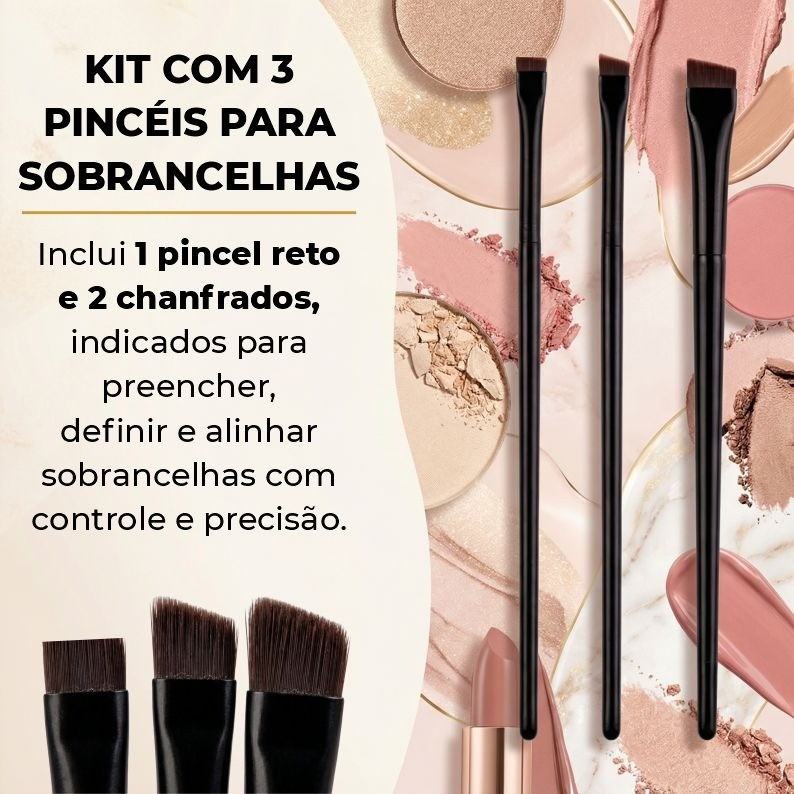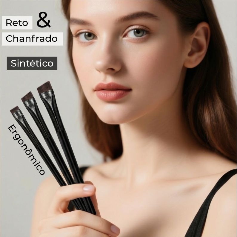 Kit 3 Pincel Chanfrado Profissional Design Sobrancelha Henna