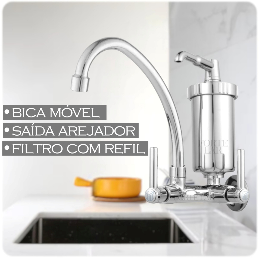 Torneira de Cozinha com Filtro Bica Móvel 360° Parede Bancada Pia 1/4 de Volta Filtro com Refil