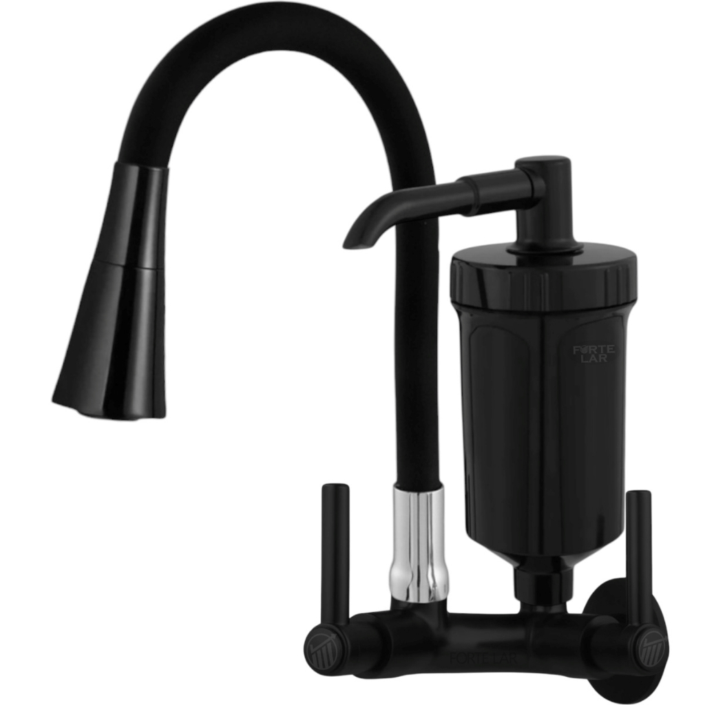 Torneira de Cozinha Preta com Filtro Cone 2 Saídas de Água Tubo Flexível Gourmet