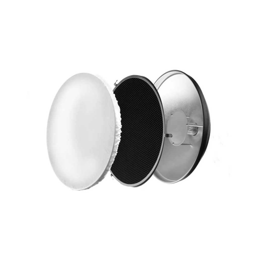 Refletor Tipo Beauty Dish Cor Branca com Grid Tecido Difusor