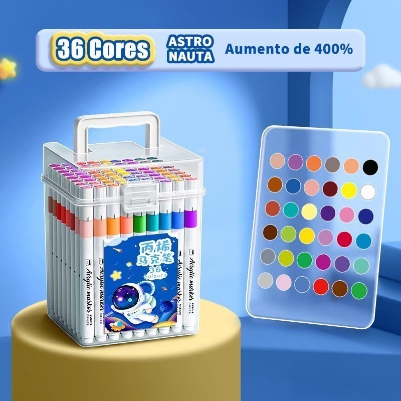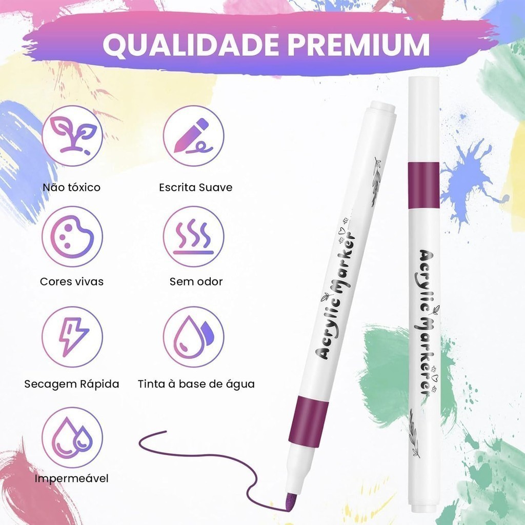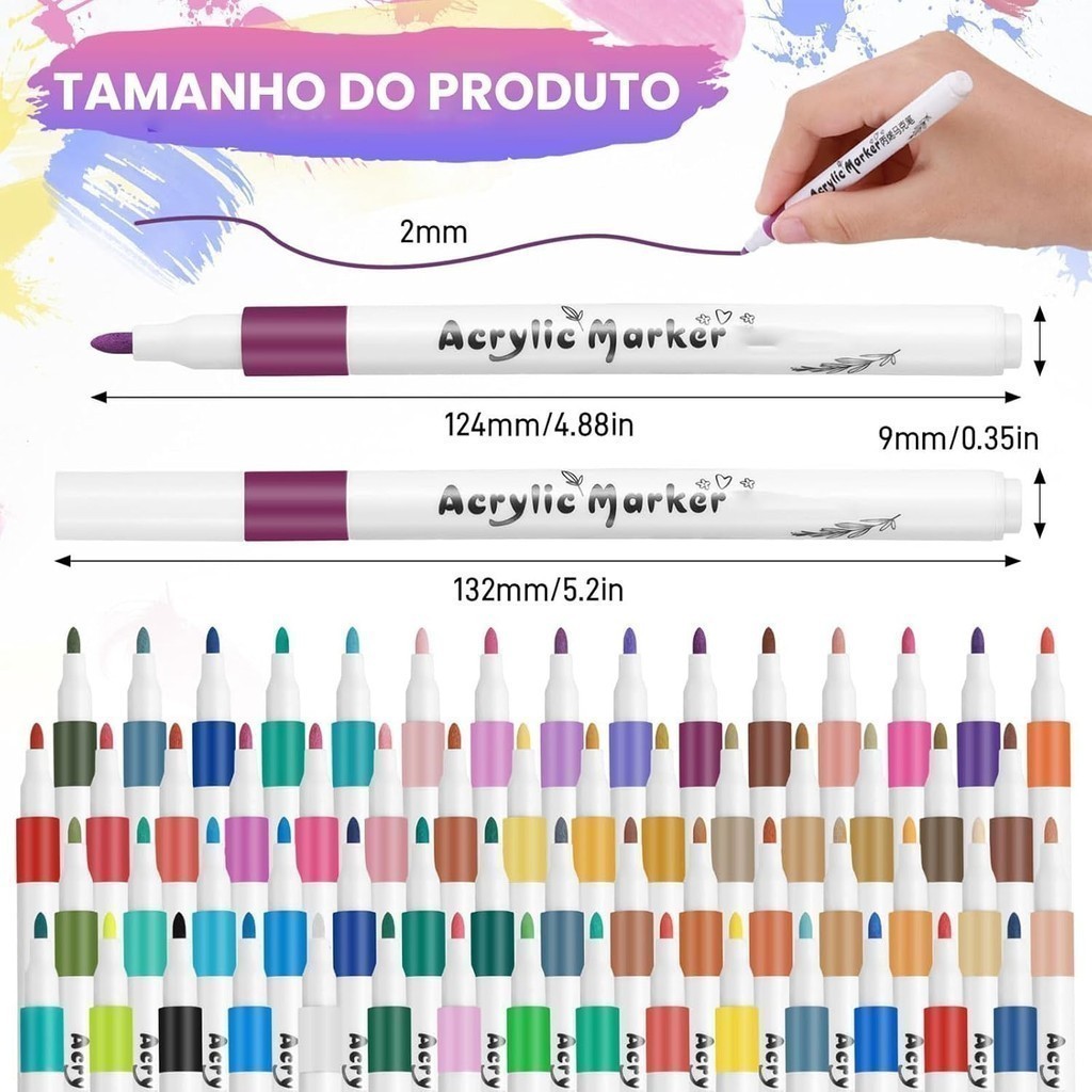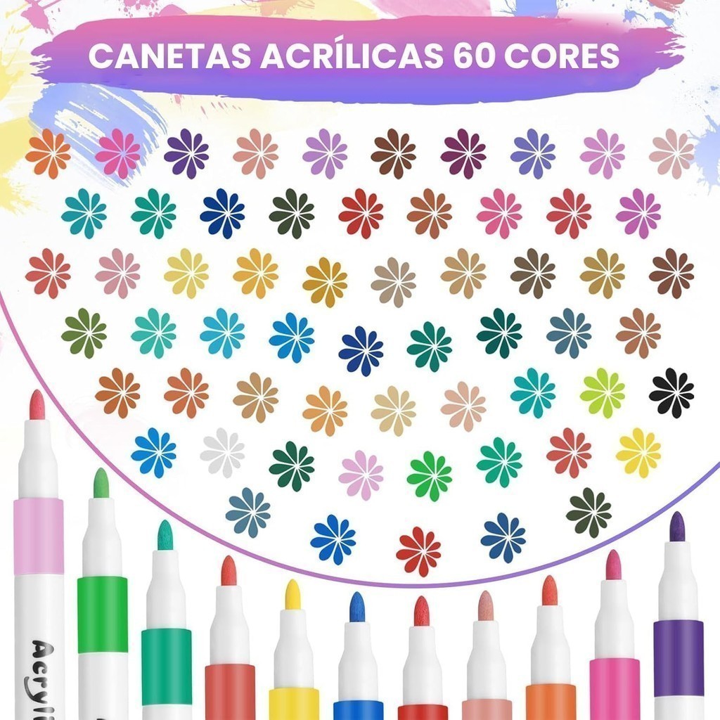 Kit Canetas Acrílicas Profissionais 24/36/48/60/80 Cores Vibrantes Permanentes à Prova d'Água