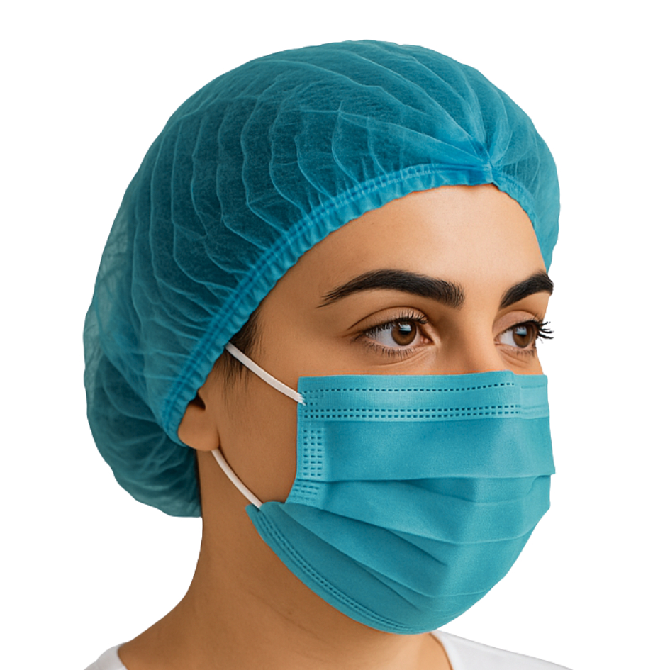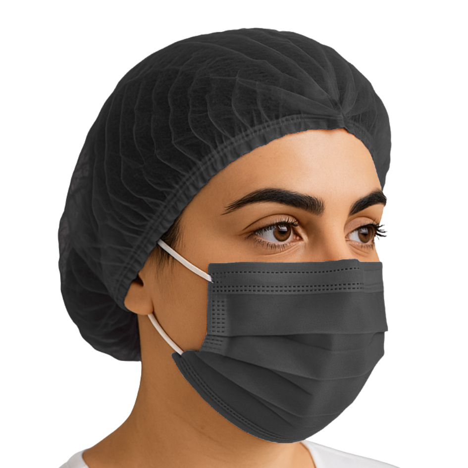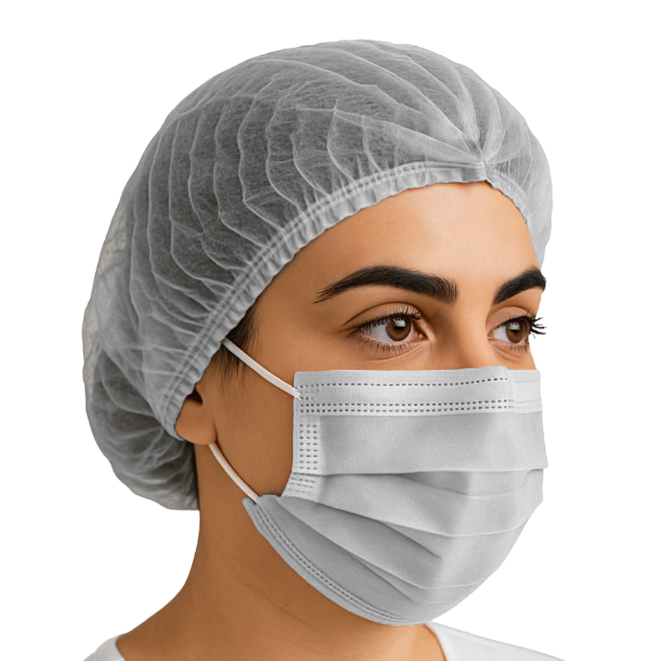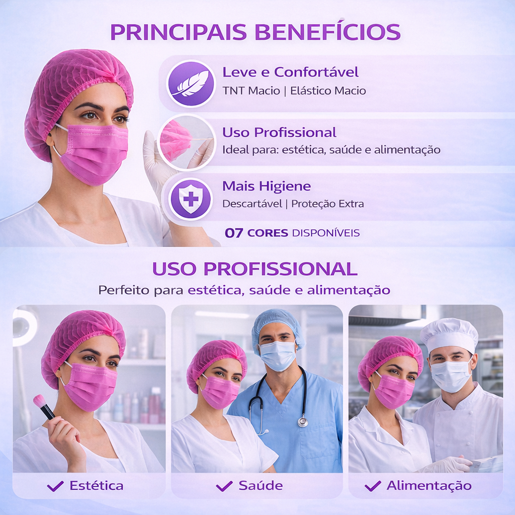 Kit AVANÇADO 100 Máscaras + 100 Toucas Descartáveis p/ Proteção Facial Salão, Clínica & Cozinha