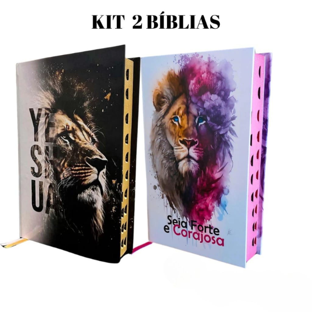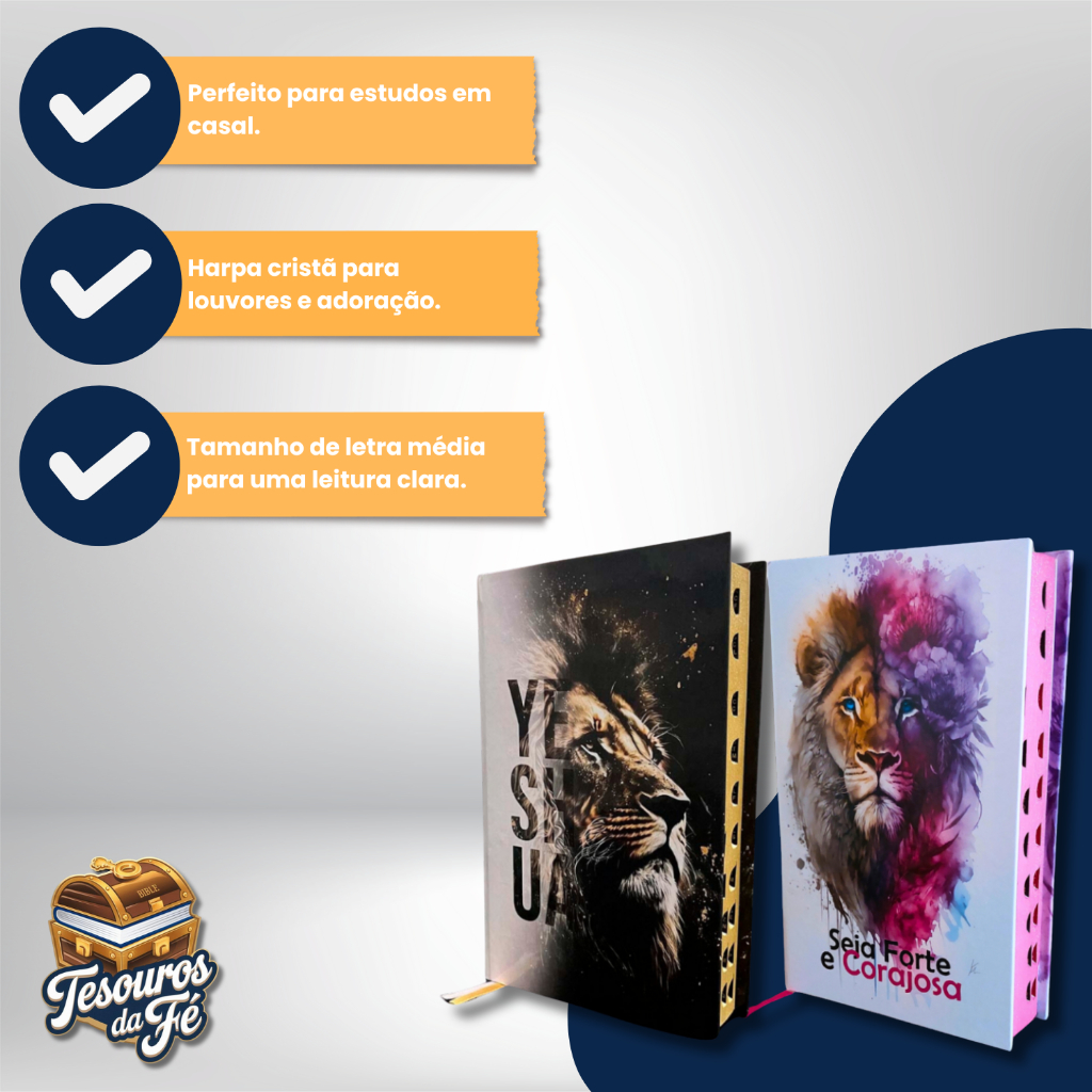 Kit 2 Bíblias Feminina Masculina Letras Média Capa Dura Harpa João Ferreira de Almeida Jovem