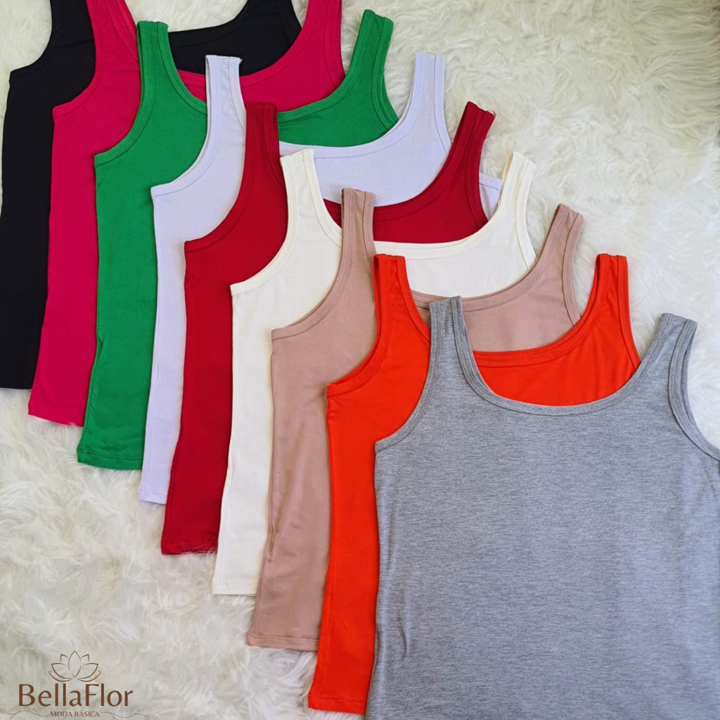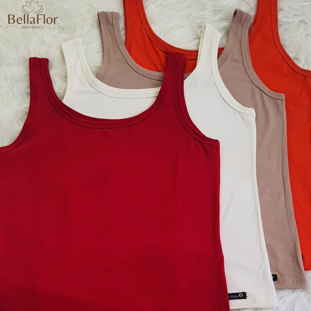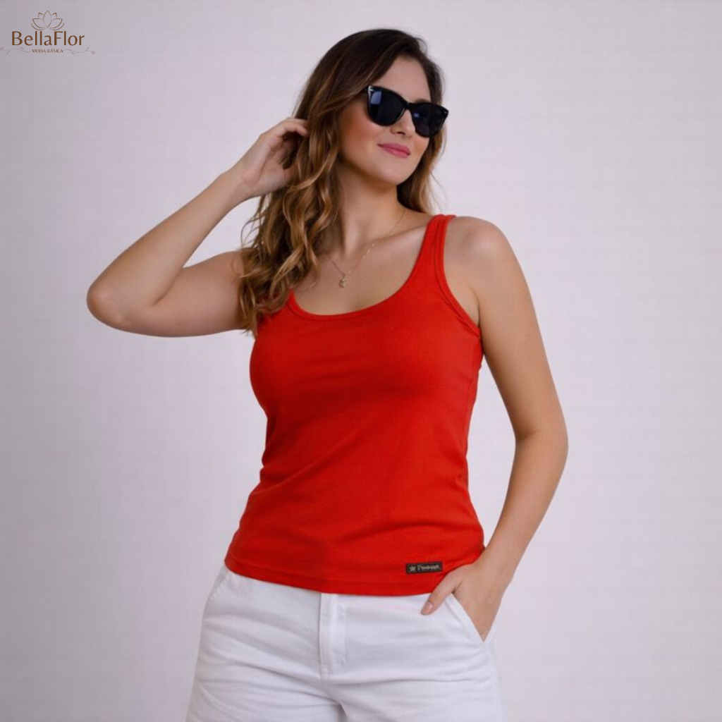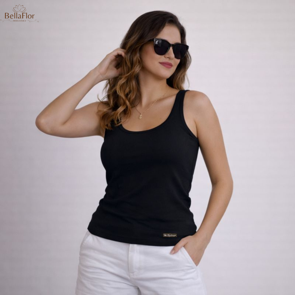 Regata Feminina Básica de Viscolycra Alça Larga Casual Confortável