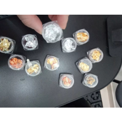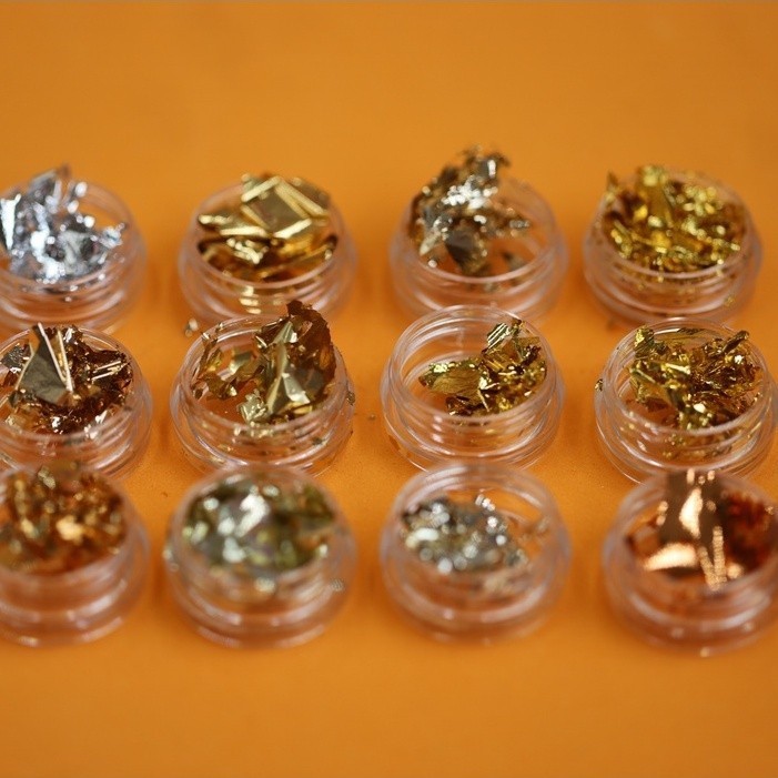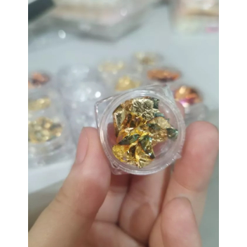 KIT 12 Potinho De Folha De Ouro / Prata Para Decoração De Unhas