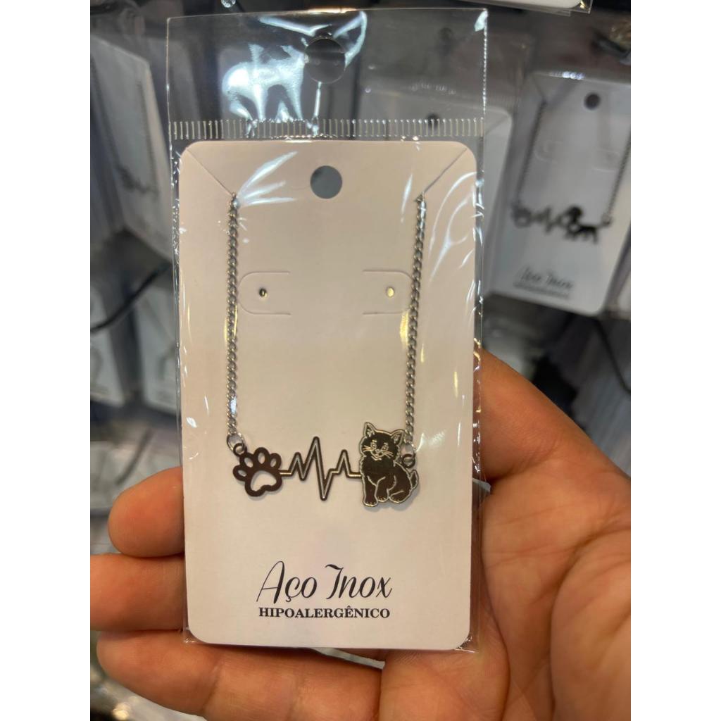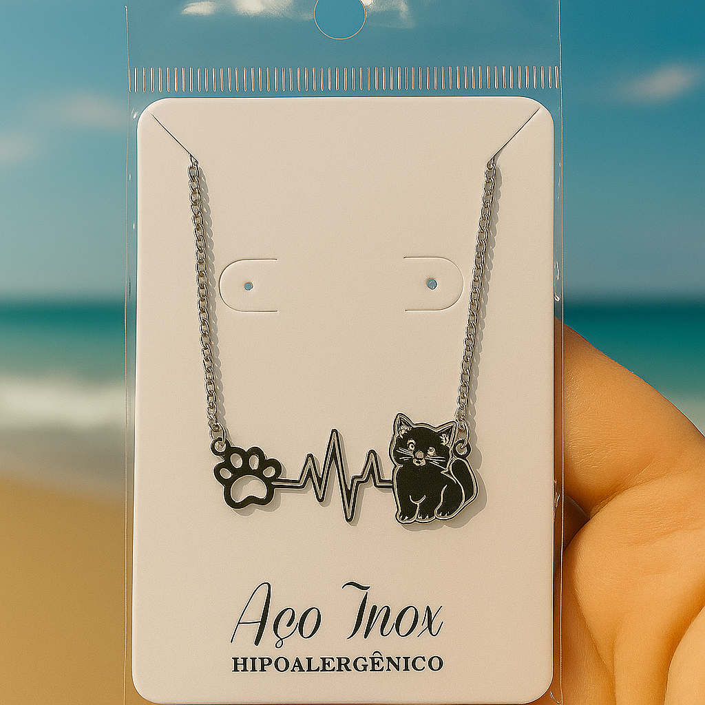 Colar Pet Gatinho e Pata com Batimentos – Corrente Aço Inoxidável Unissex Envio Imediato