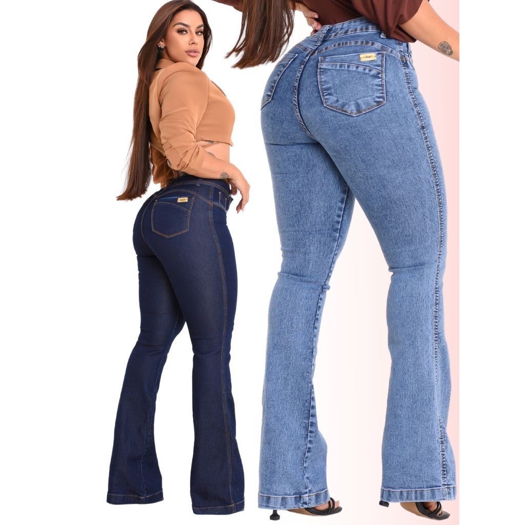 Jeans Calça Flare Feminino Modelador Empina Bumbum Boca de Sino Cos Alto Cintura Alta Modeladora