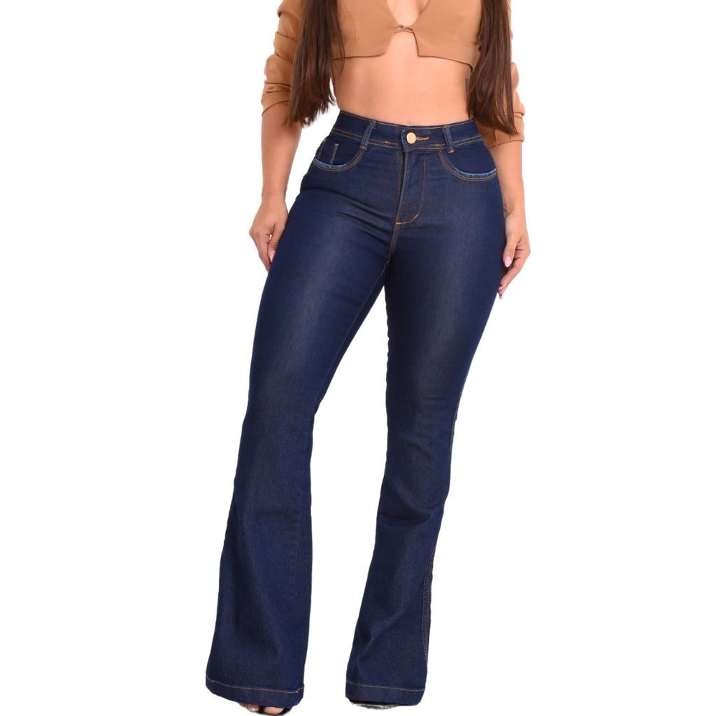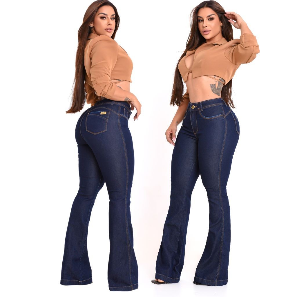 Calça Flare Jeans Feminina Cintura Alta Modeladora Cos Alto Efeito Empina Bumbum Elegância e Conforto