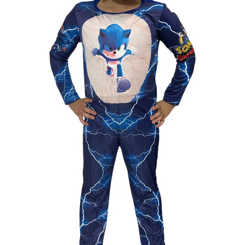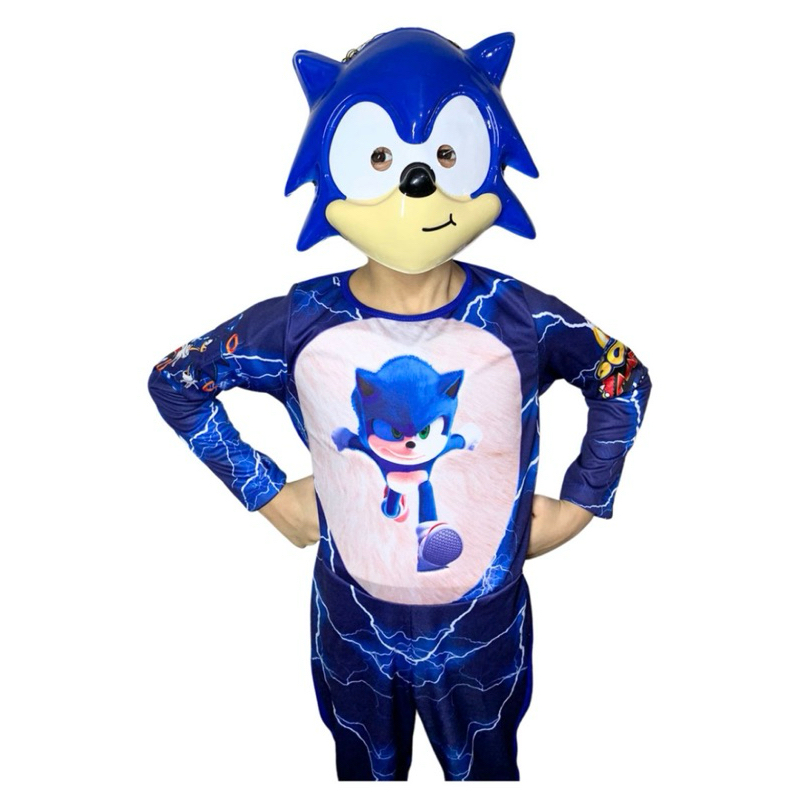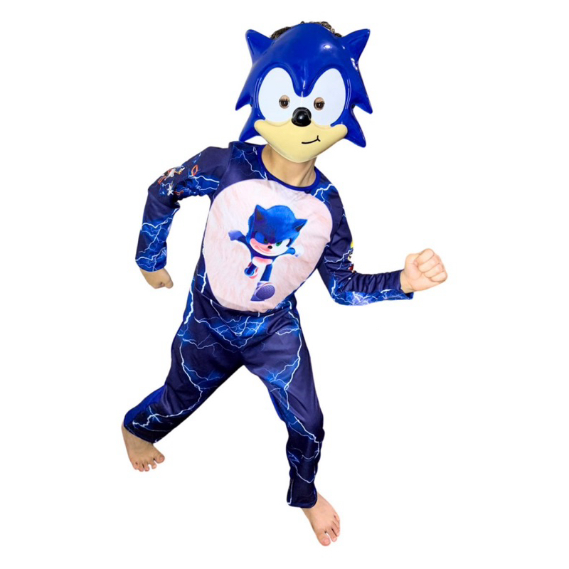 Fantasia Sonic Longa Infantil C/Enchimento E Máscara