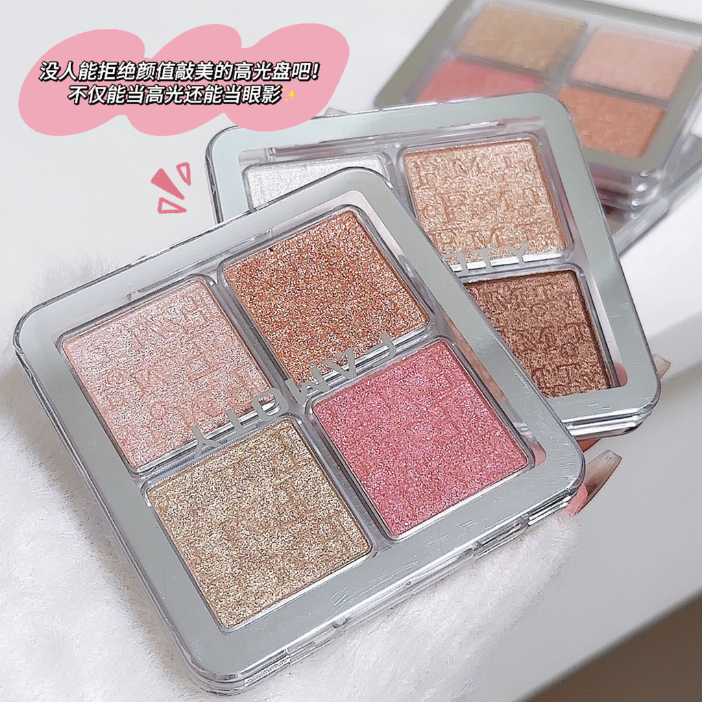 FAMOTY Paleta De 4 Cores Pó Destacador De Sombra Em Maquiagem Facial Glitter De Longa Duração 12g