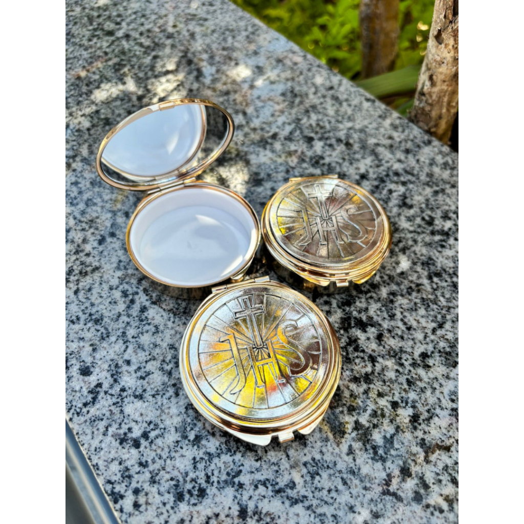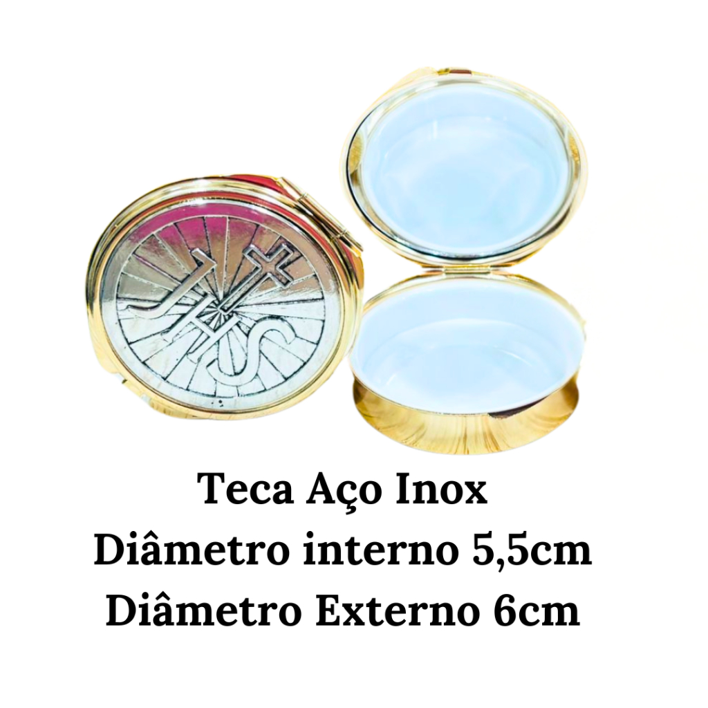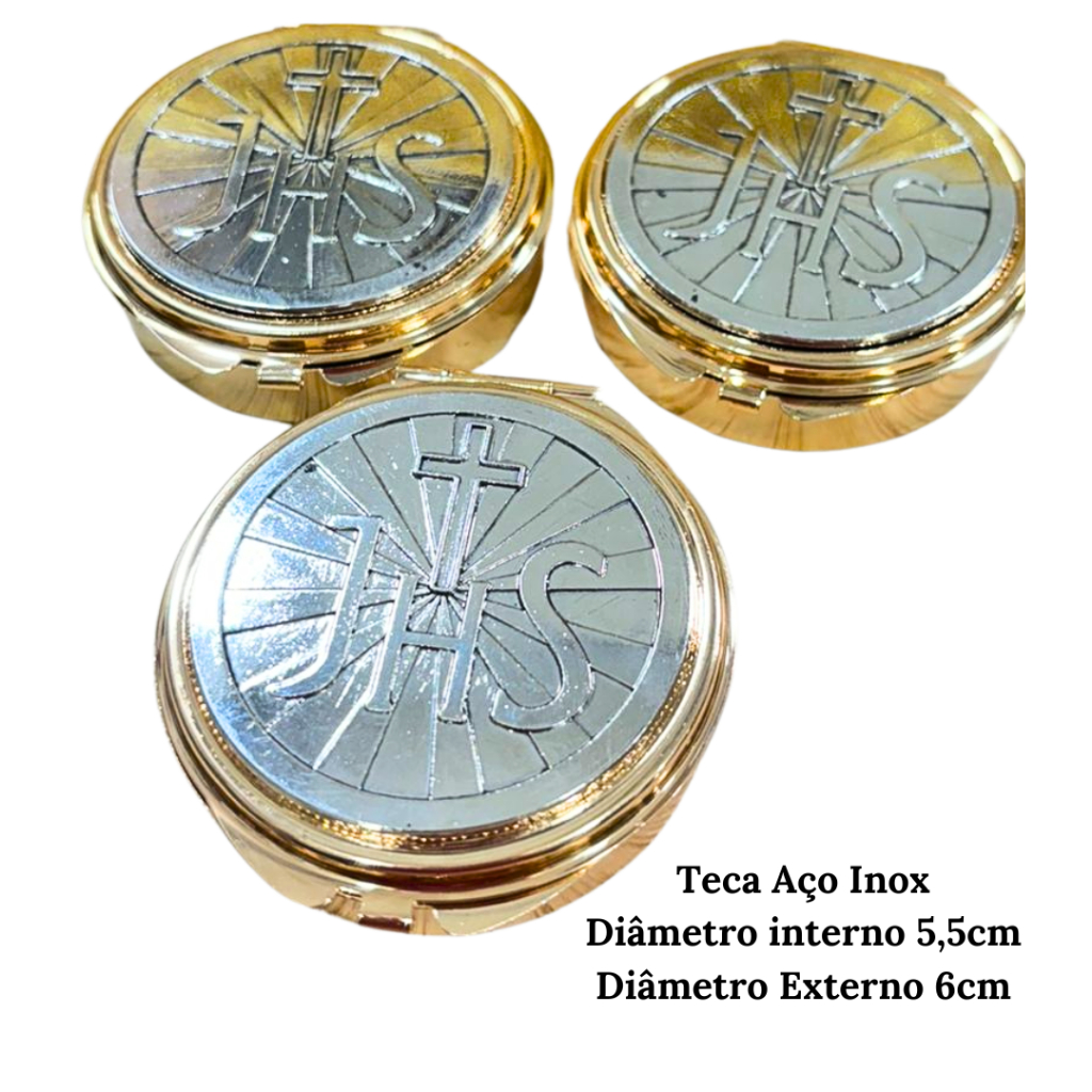 Teca Porta Hóstia Eucarística modelo JHS Dourada com Prata