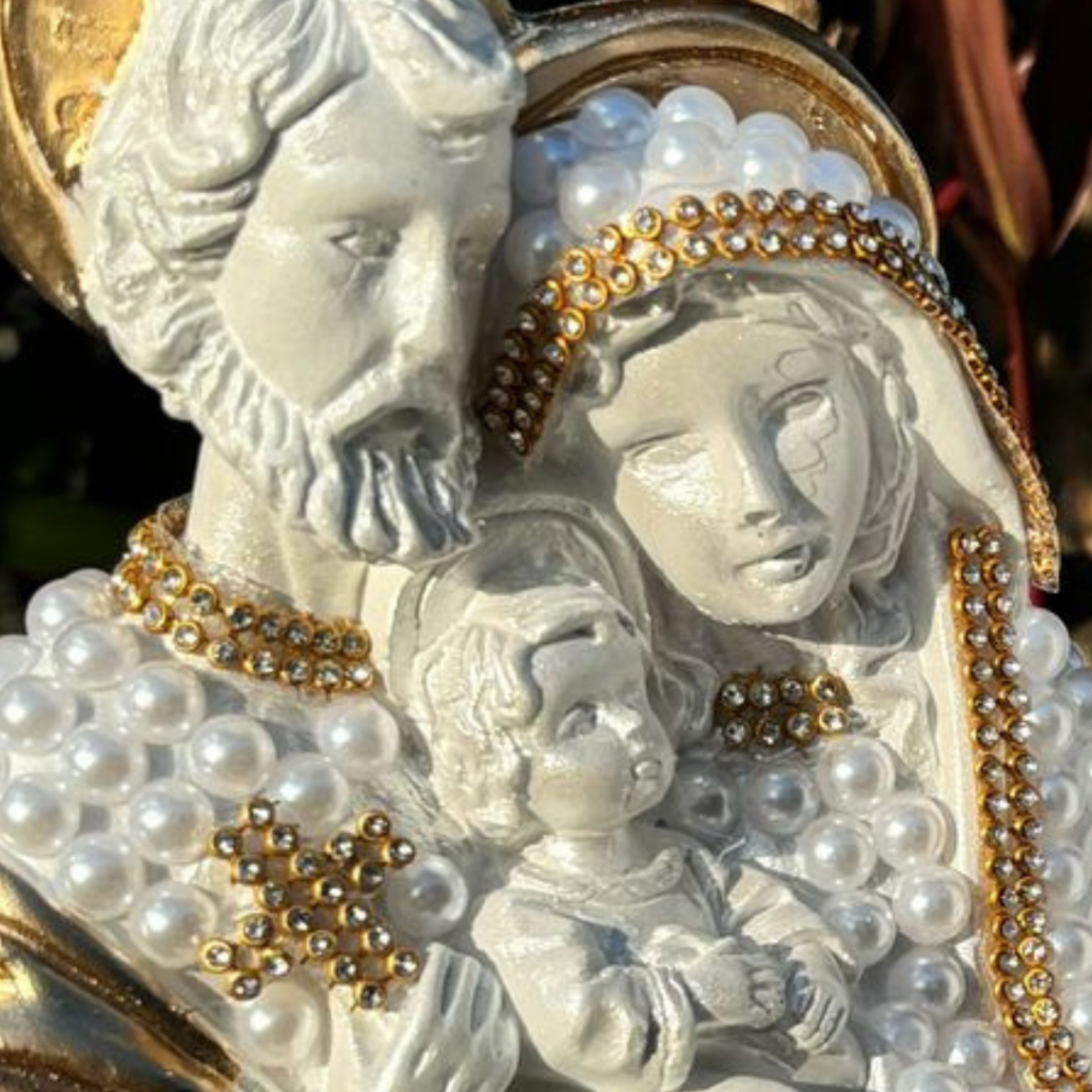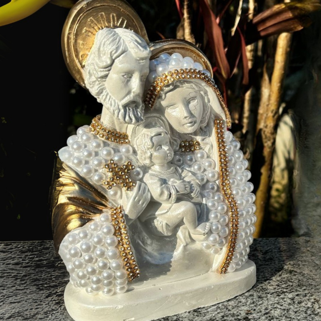 Sagrada Família De Pérolas 20 Cm- Em Gesso