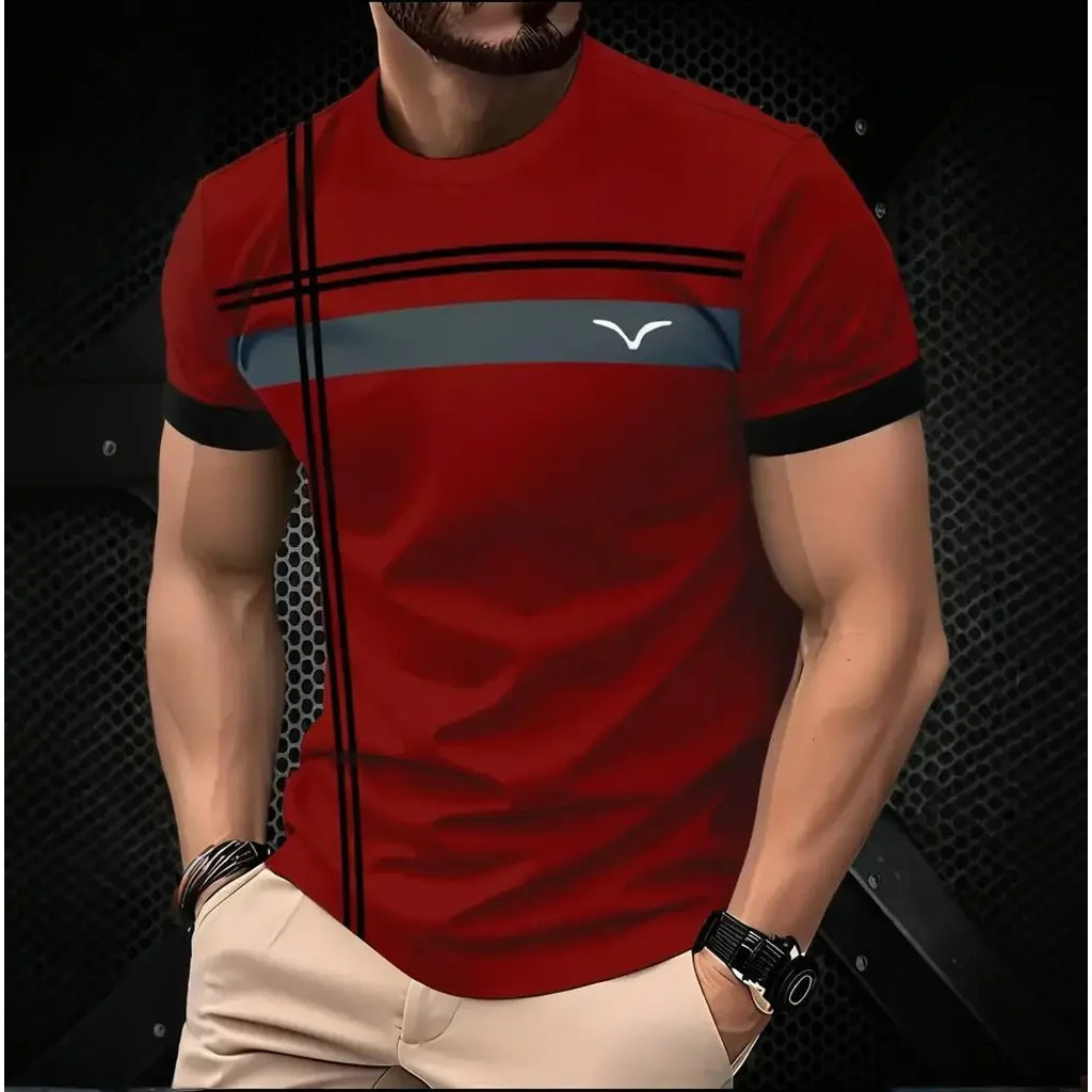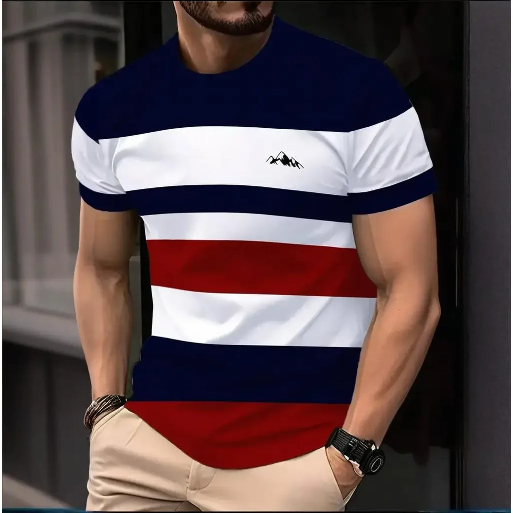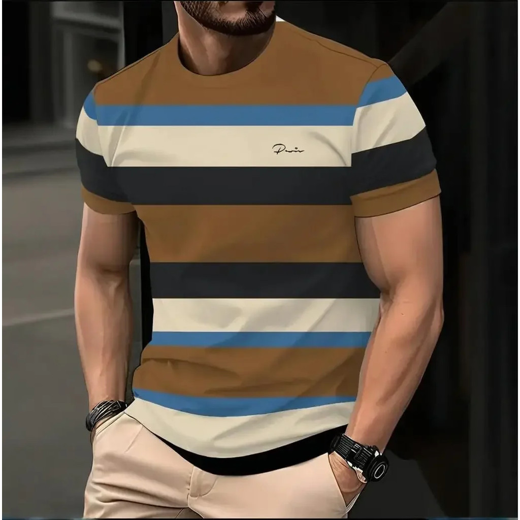 Moda Masculina Verão Ao Ar Livre Casual Camiseta Turned Neck Manga Curta Listrado Topo 3D Impresso Criança Crianças Topo
